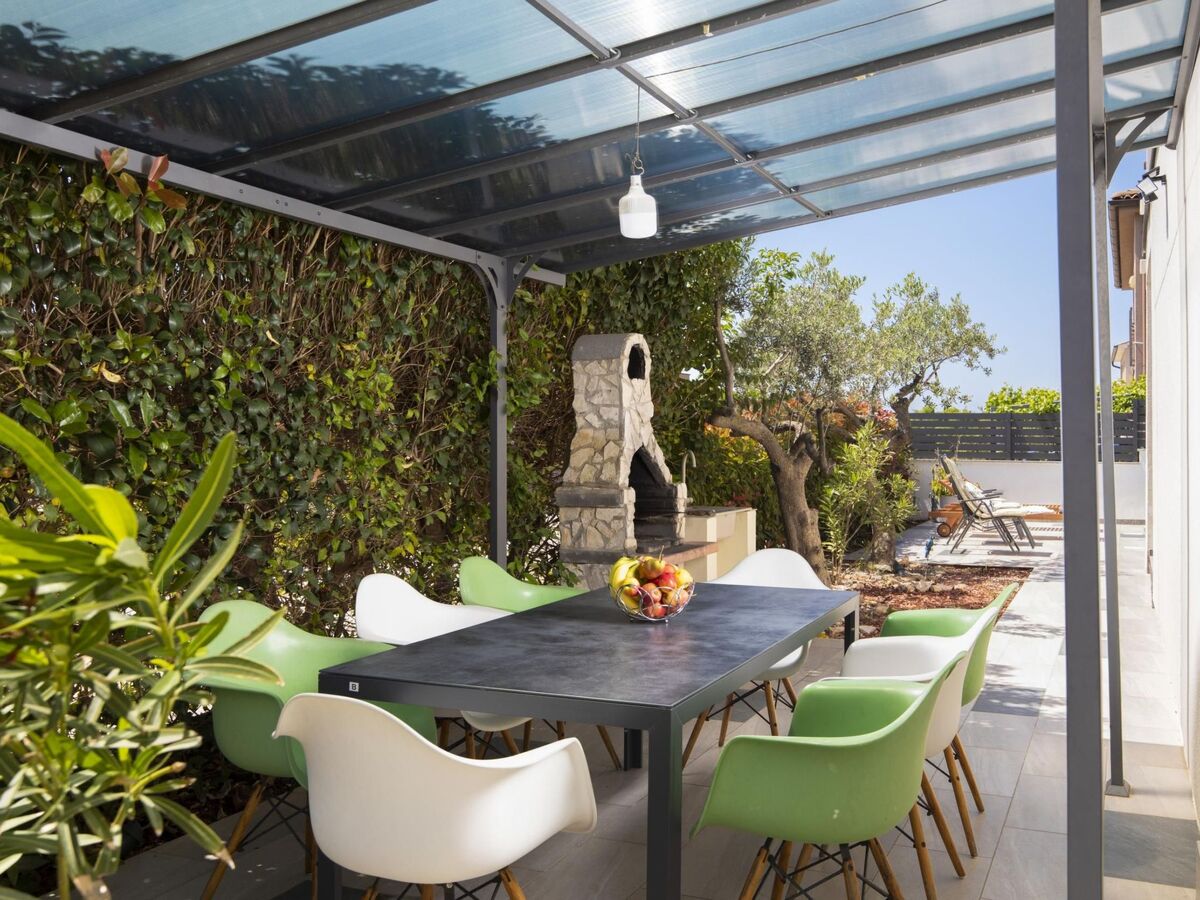The outside part of the house contains a 24 m2 swimming pool, an outdoor shower, sun loungers, a charcoal grill, a table and chairs for 6 people, and a trampoline for our youngest.