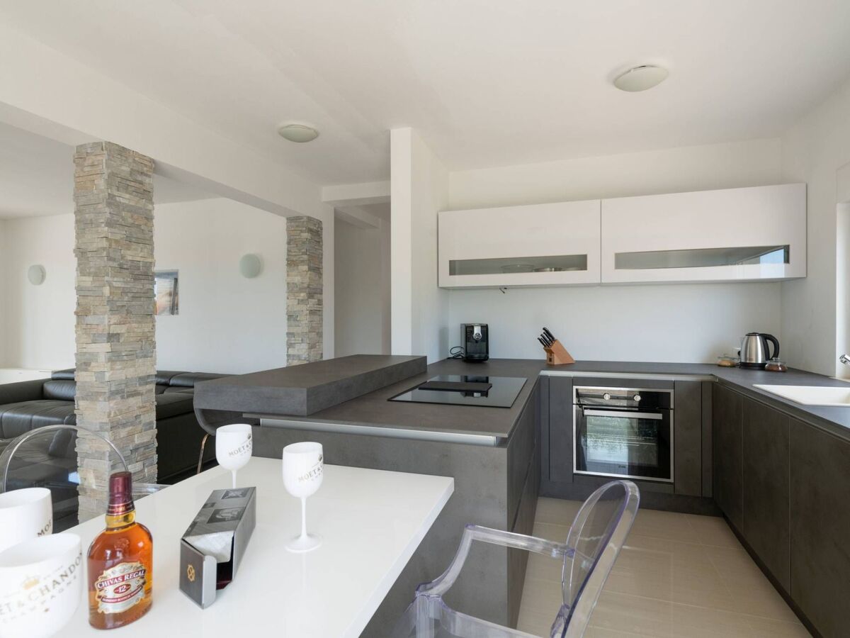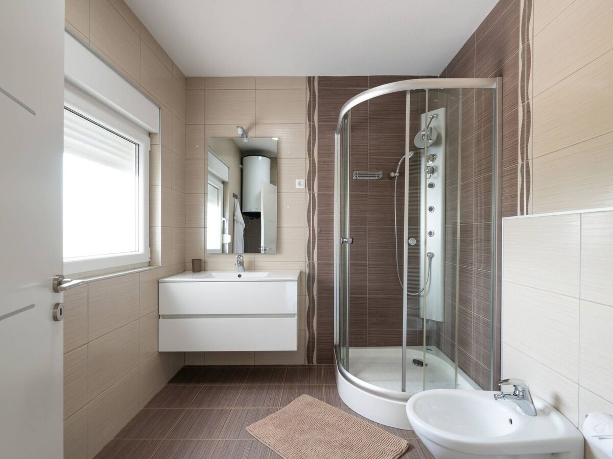 Pula Airport is 14 km away and the first beach Peroj is 6 km away.It has a fully fenced yard with a heated pool, barbecue and parasols.It consists of 3 bedrooms with double beds and 3 bathroomstwo with shower, one with bathtub.
