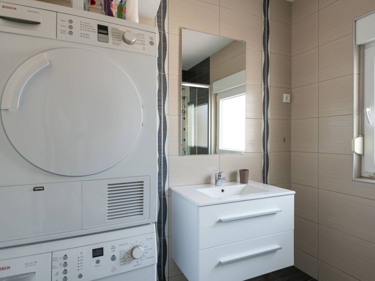 One bathroom has a dryer and washing machine.The kitchen is equipped with an oven, fridge and freezer, dishwasher and a coffee machine.