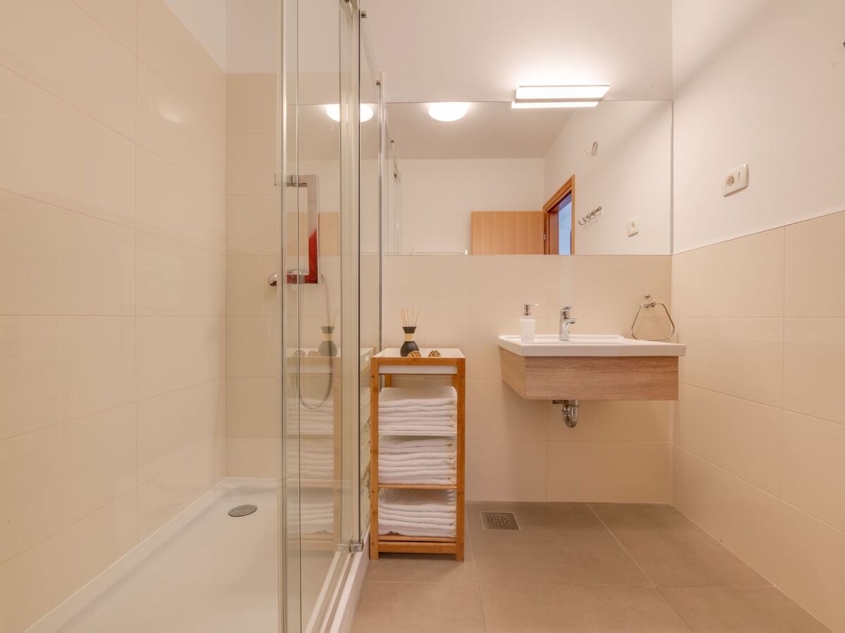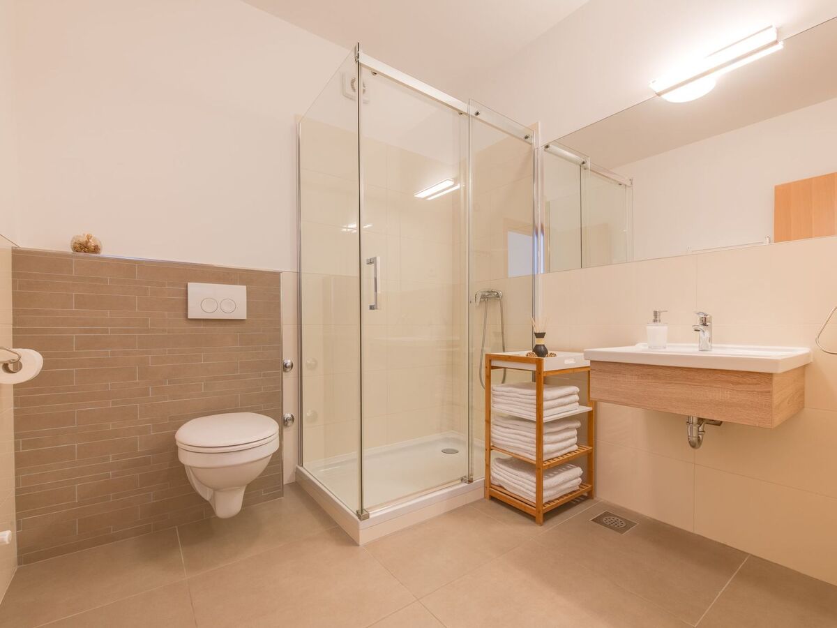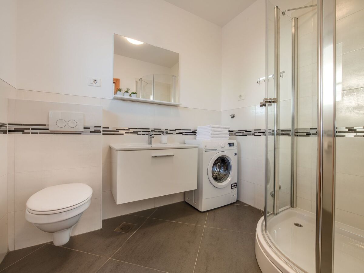 Il y a également une cuisine entièrement équipée avec un four à micro-ondes, une machine à café, un lave-vaisselle et un coin repas, ainsi qu'une salle de bains avec une douche.