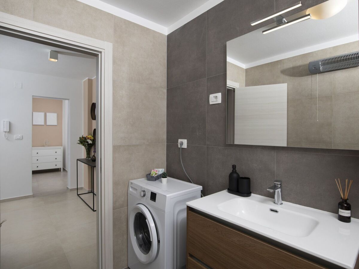 Two bedrooms have double beds (160x200 cm) and en-suite bathrooms with showers, while the third bedroom has 2 single beds (100x200 cm each) and a bathroom with a shower and washing machine in the hallway for everyone's convenience.