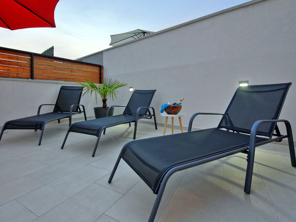- piscine privée avec jets, 25 m2 (3,5m x 7,5m) avec douche extérieure, 6 chaises longues, 3 parasols, barbecue, mobilier de salon