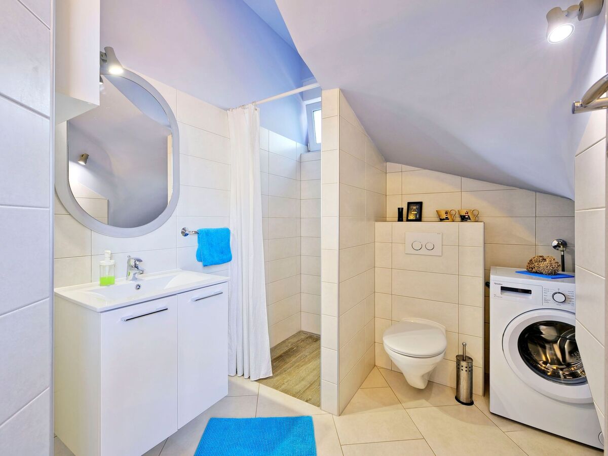 - salle de bain : grande douche (100x 80), wc, lavabo, machine à laver, sèche-cheveux