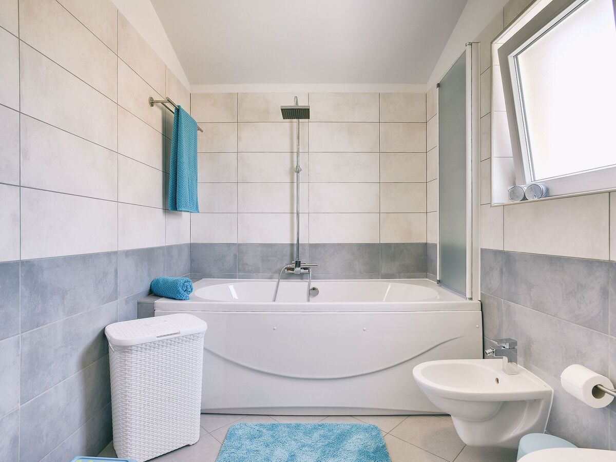 -1st bathroom: washbasin, toilette, bath, bide, hairdryer