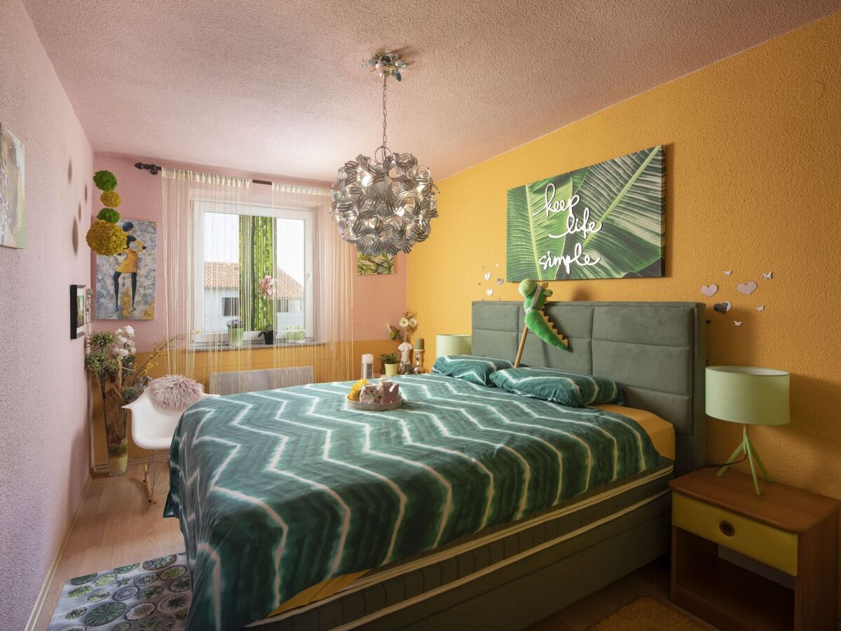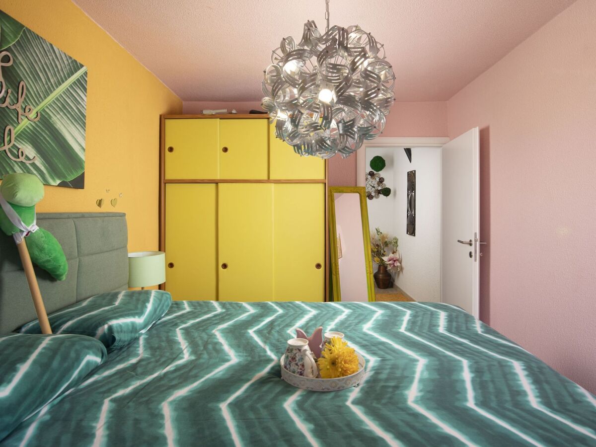 One air conditioning unit on this floor helps cool both the bedroom and the mezzanine above.