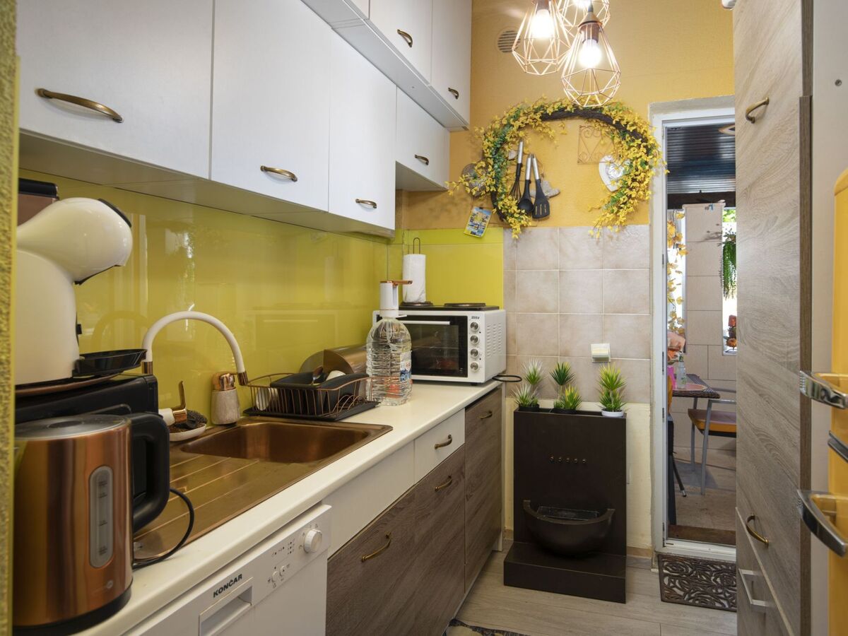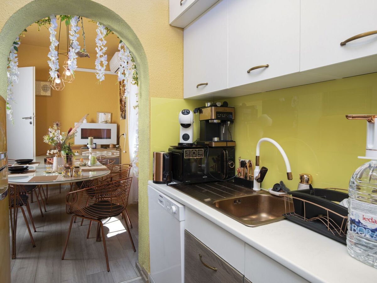 Kitchen appliances include a Dolce Gusto coffee machine, a filter coffee machine, a machine for ground coffee, an air fryer, toaster, oven, microwave, and an electric kettle.