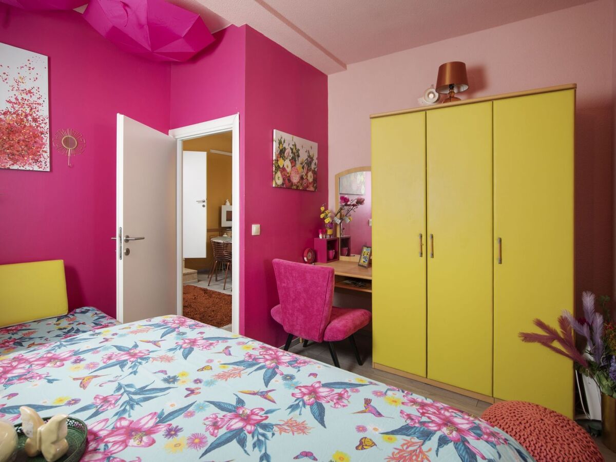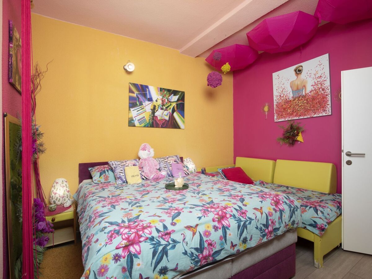 Another mezzanine level between the first and second floors contains a bedroom with a double bed.