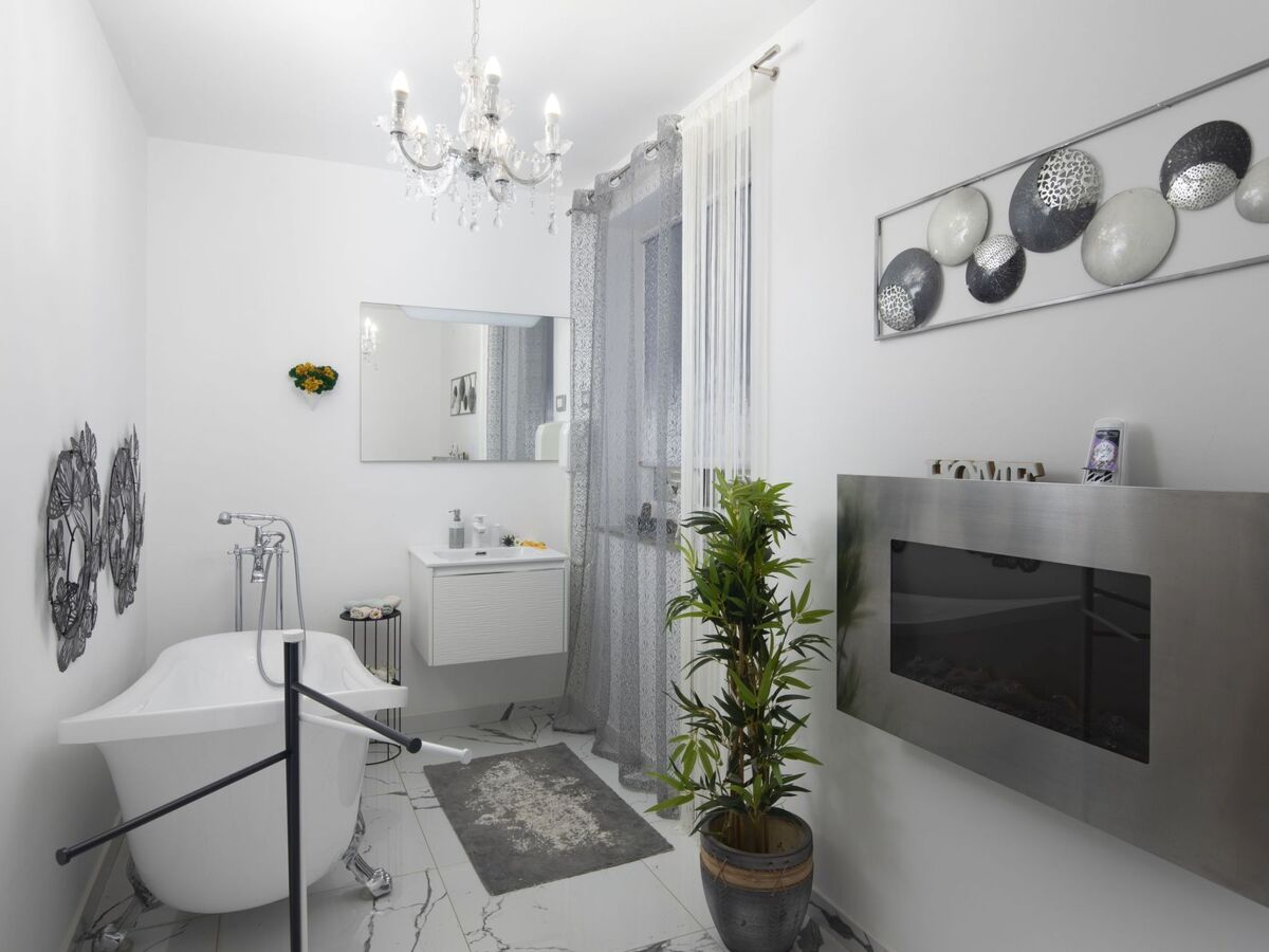 The balcony on this level offers sea views and is equipped with a hot tub.