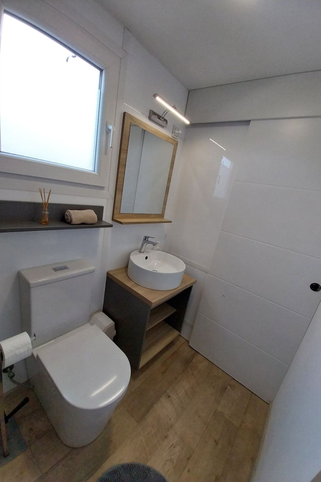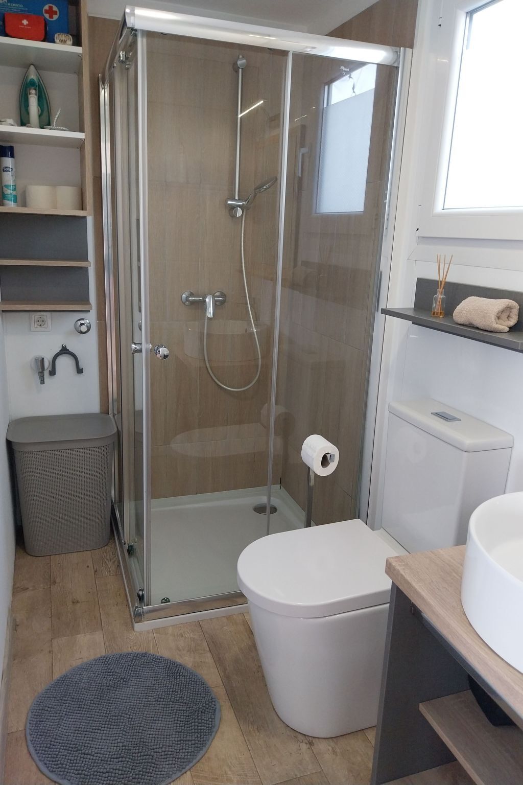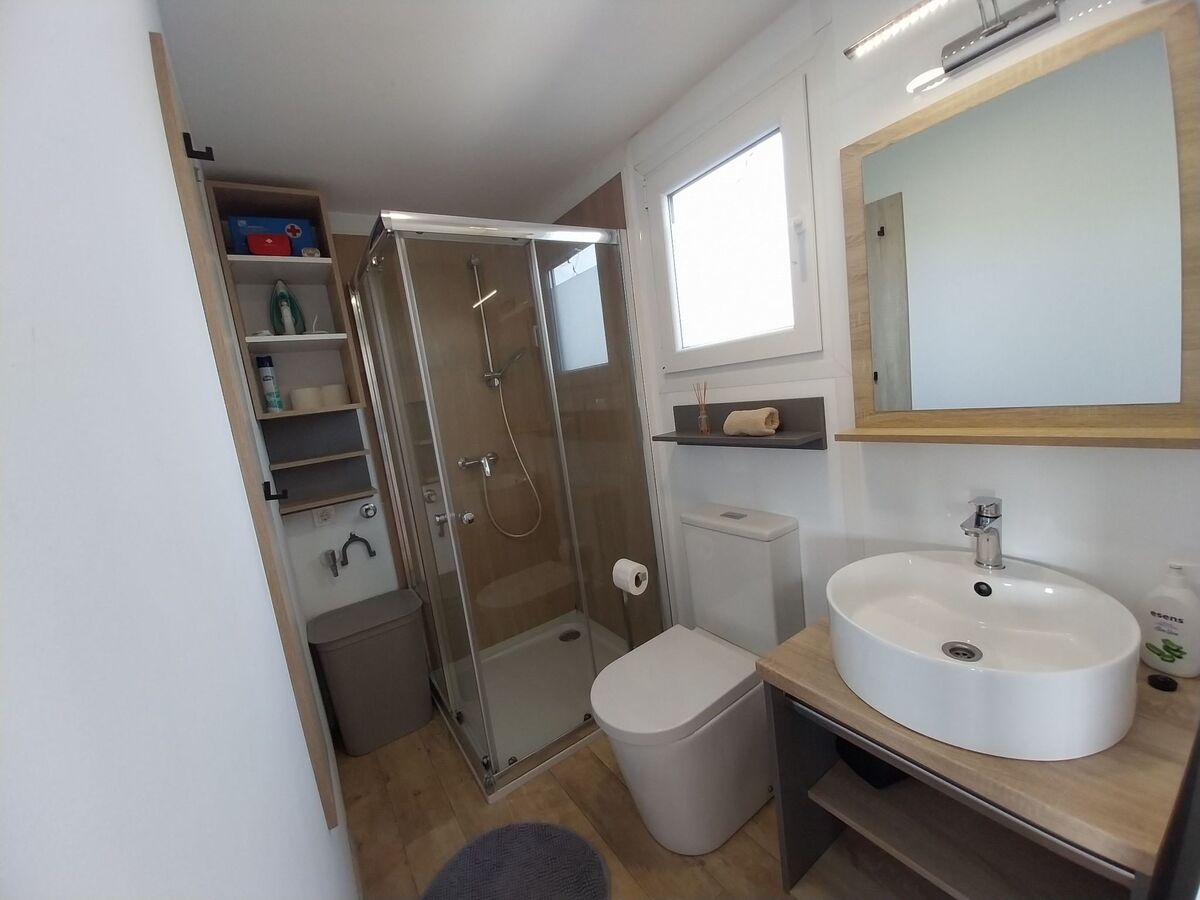 For those who want to swim or explore sea activities, the beaches with beach bars, surf club, restaurants and pet beach are only 700 meters from the house.Beach House Beta – where love finds the rhythm of nature.This charming 32 m² mobile home is situated in a perfect location – right by the sea, in a quiet corner surrounded by a lush olive grove and untouched nature.