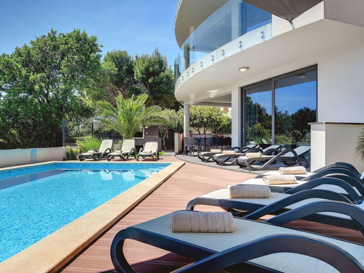 There is a private pool (8 x 4m) outside, with a sea view on all sides.