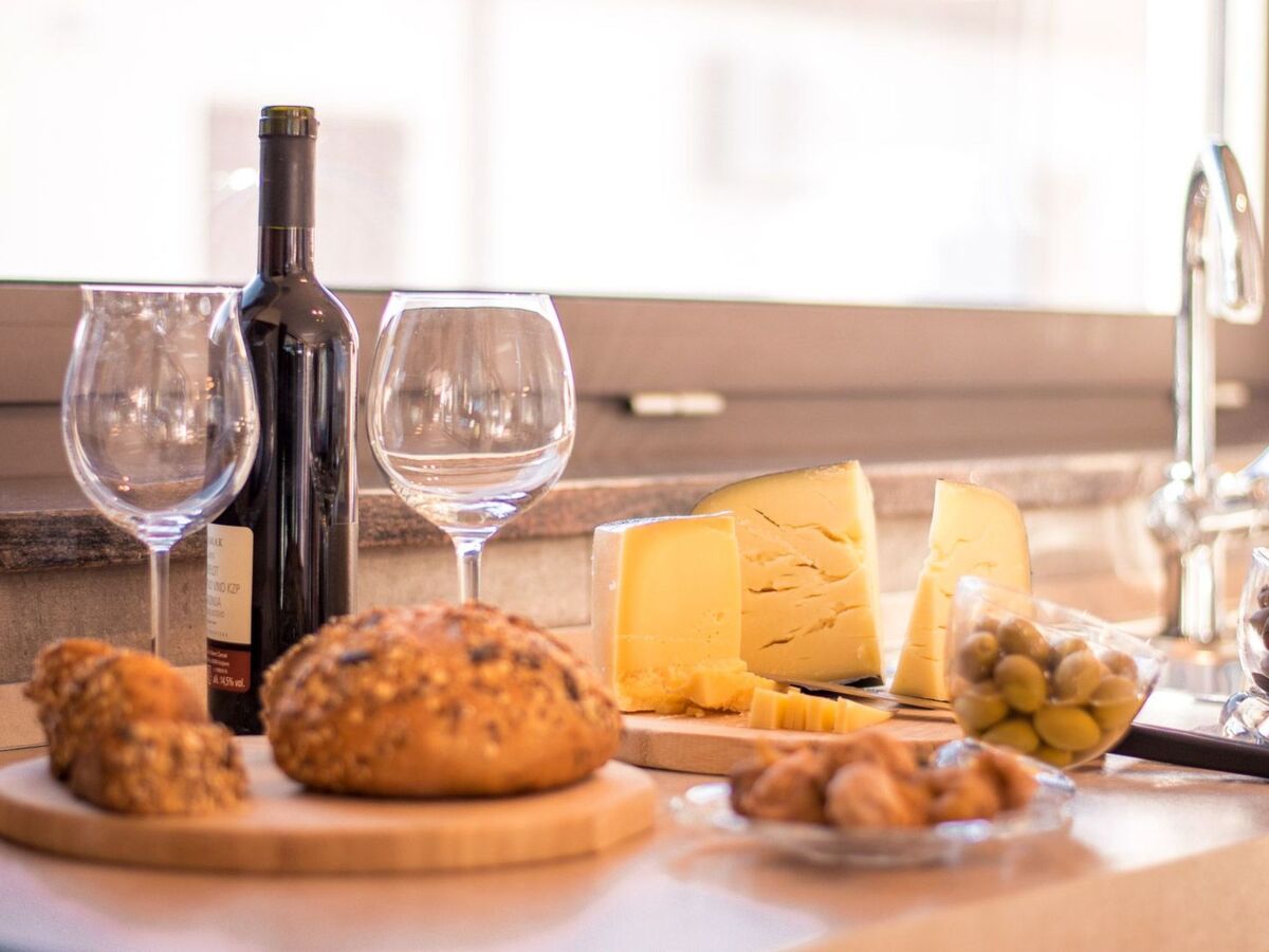 The kitchen provides everything you need, including a fridge, freezer compartment, stove, coffee machine, microwave, toaster and a dishwasher to facilitate washing up.