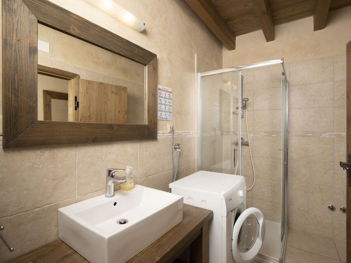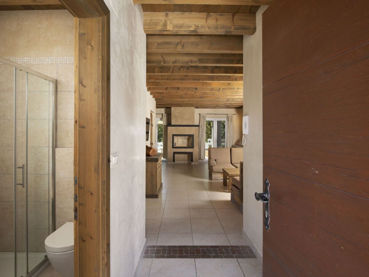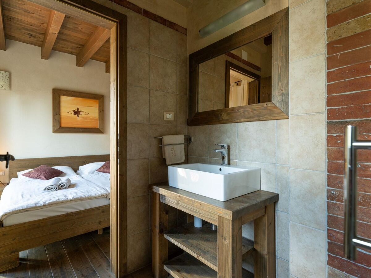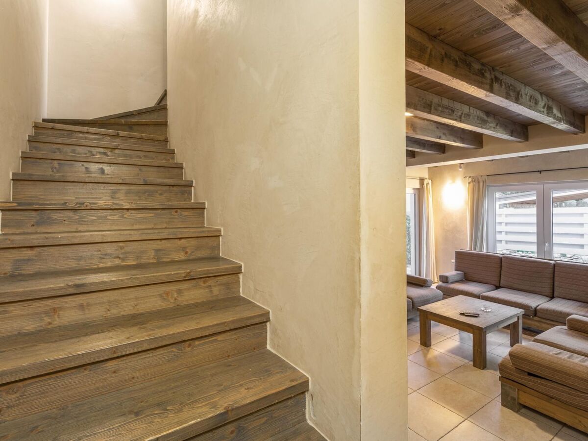 On the ground floor, you’ll find a living area with a cozy lounge and a fully equipped kitchen, ideal for shared moments.