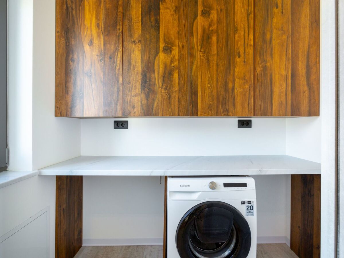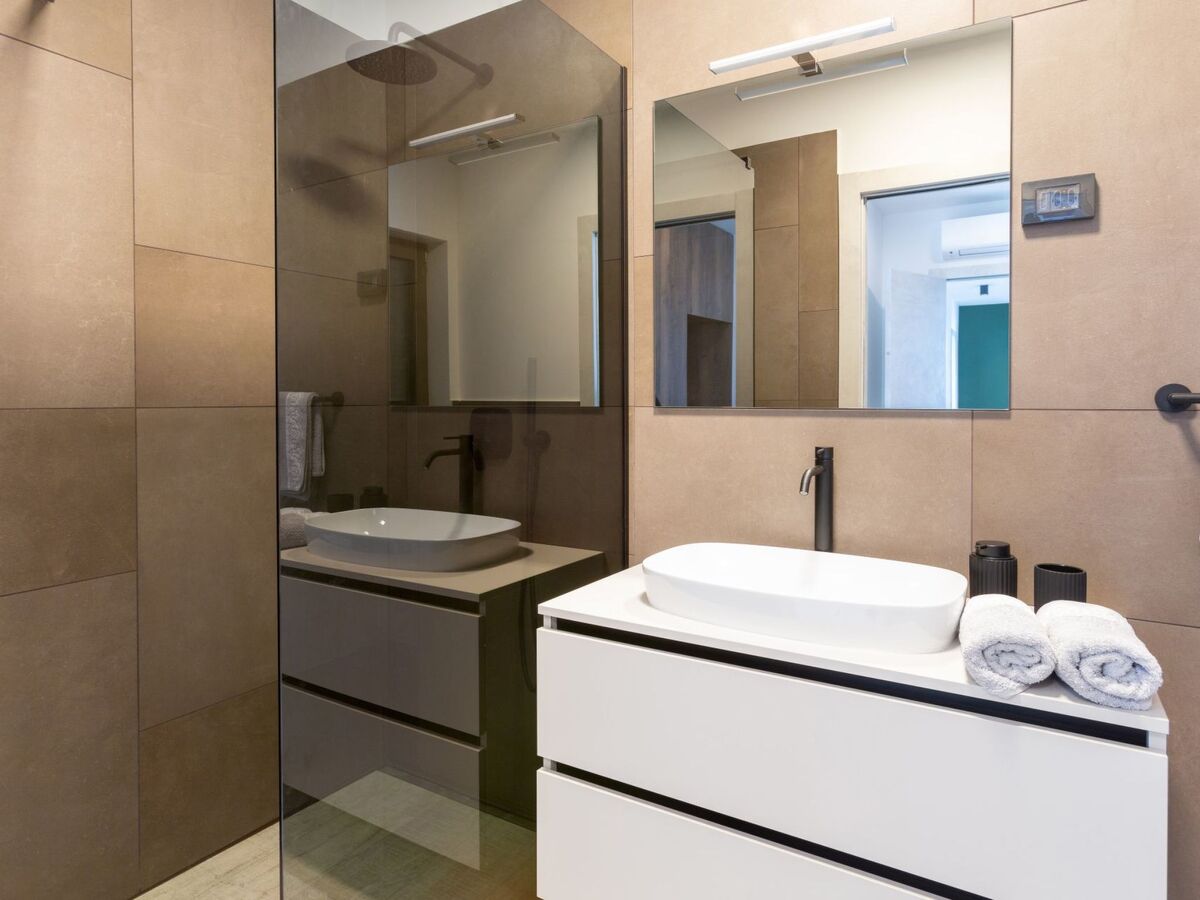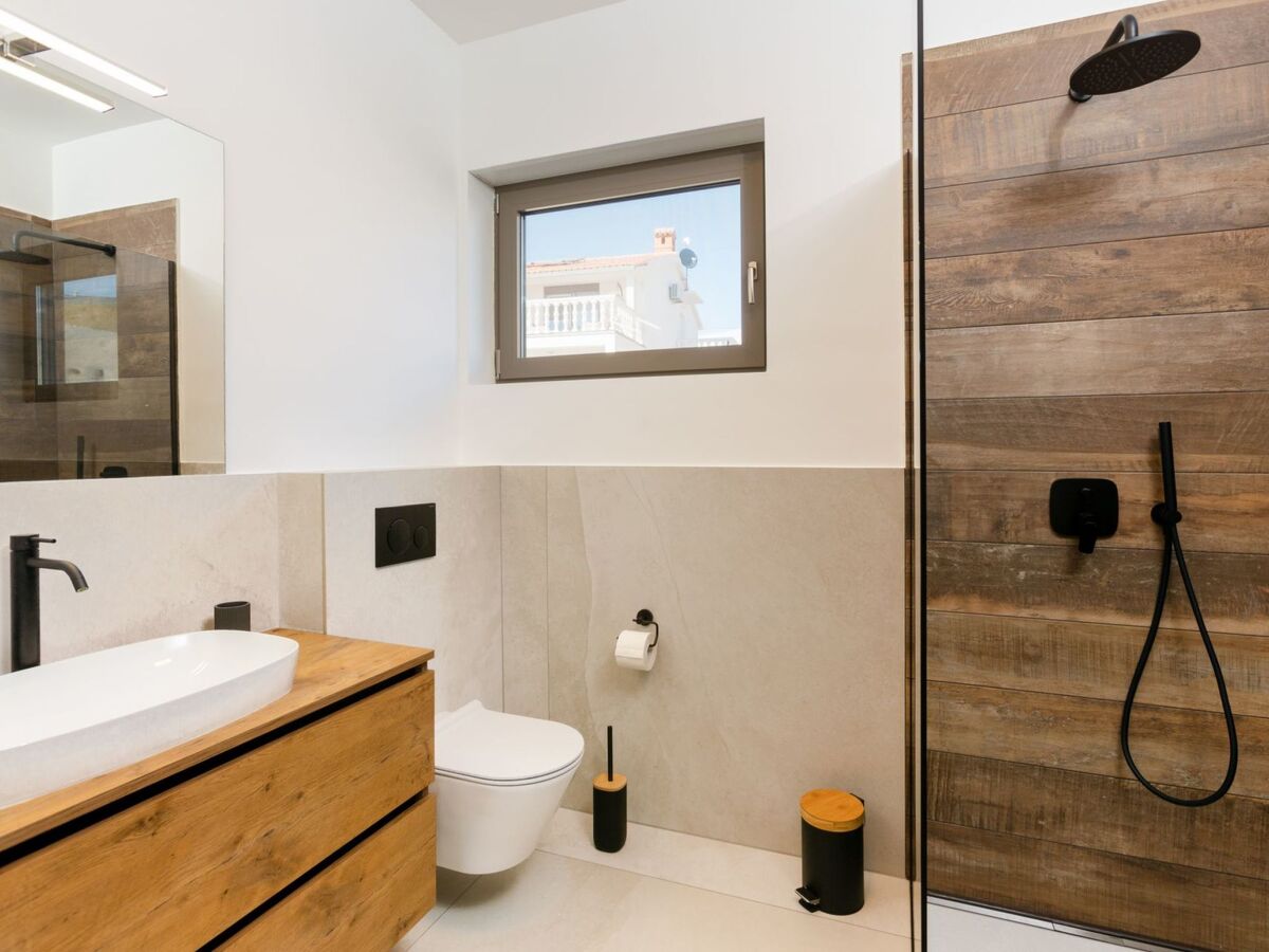 On the high first floor there is a laundry room and three more comfortable bedrooms - all with double beds (180x200), its own bathroom and balcony with partial sea-view.