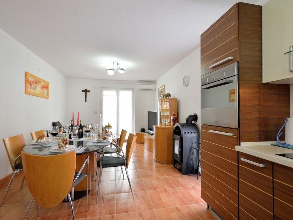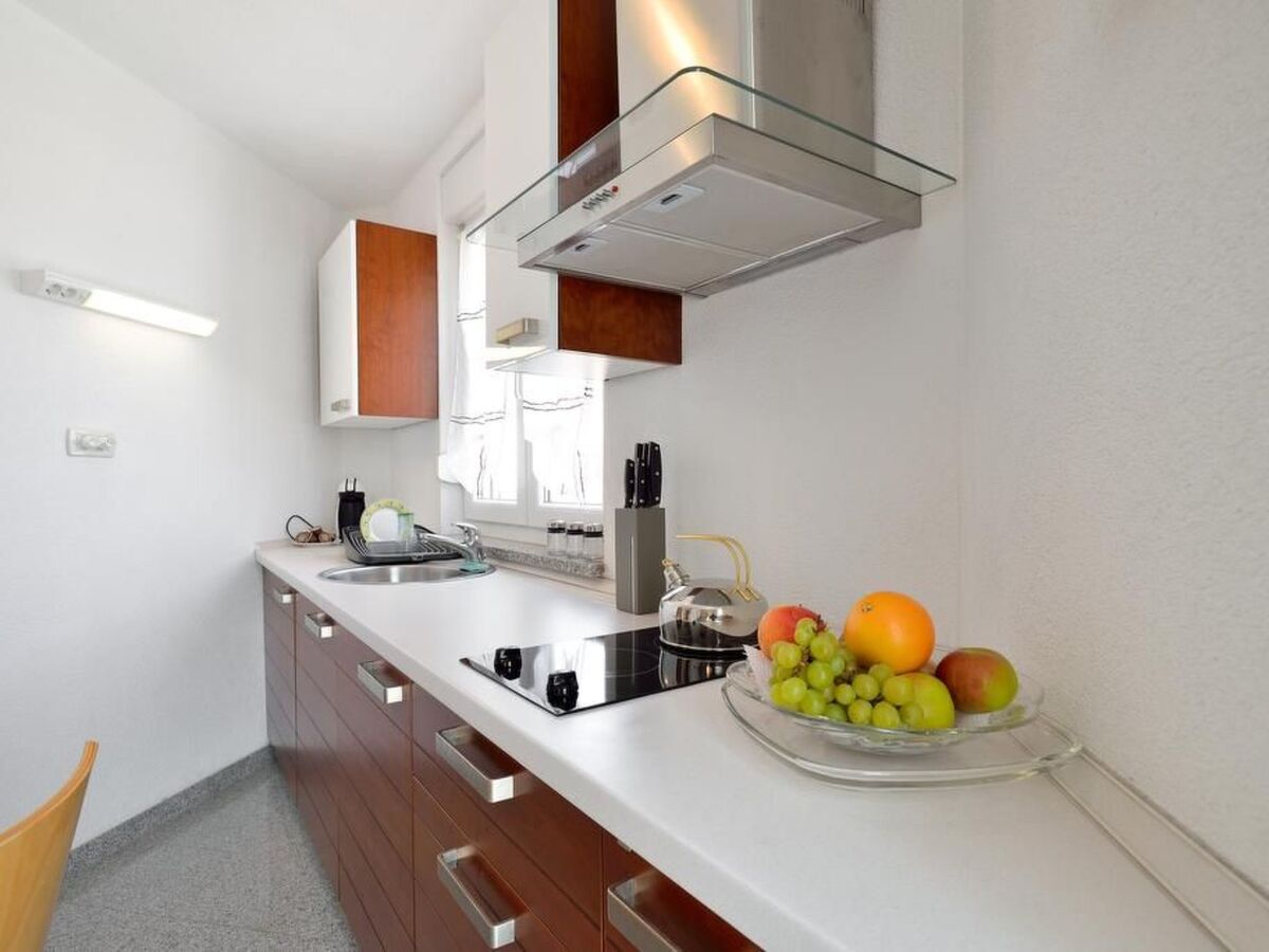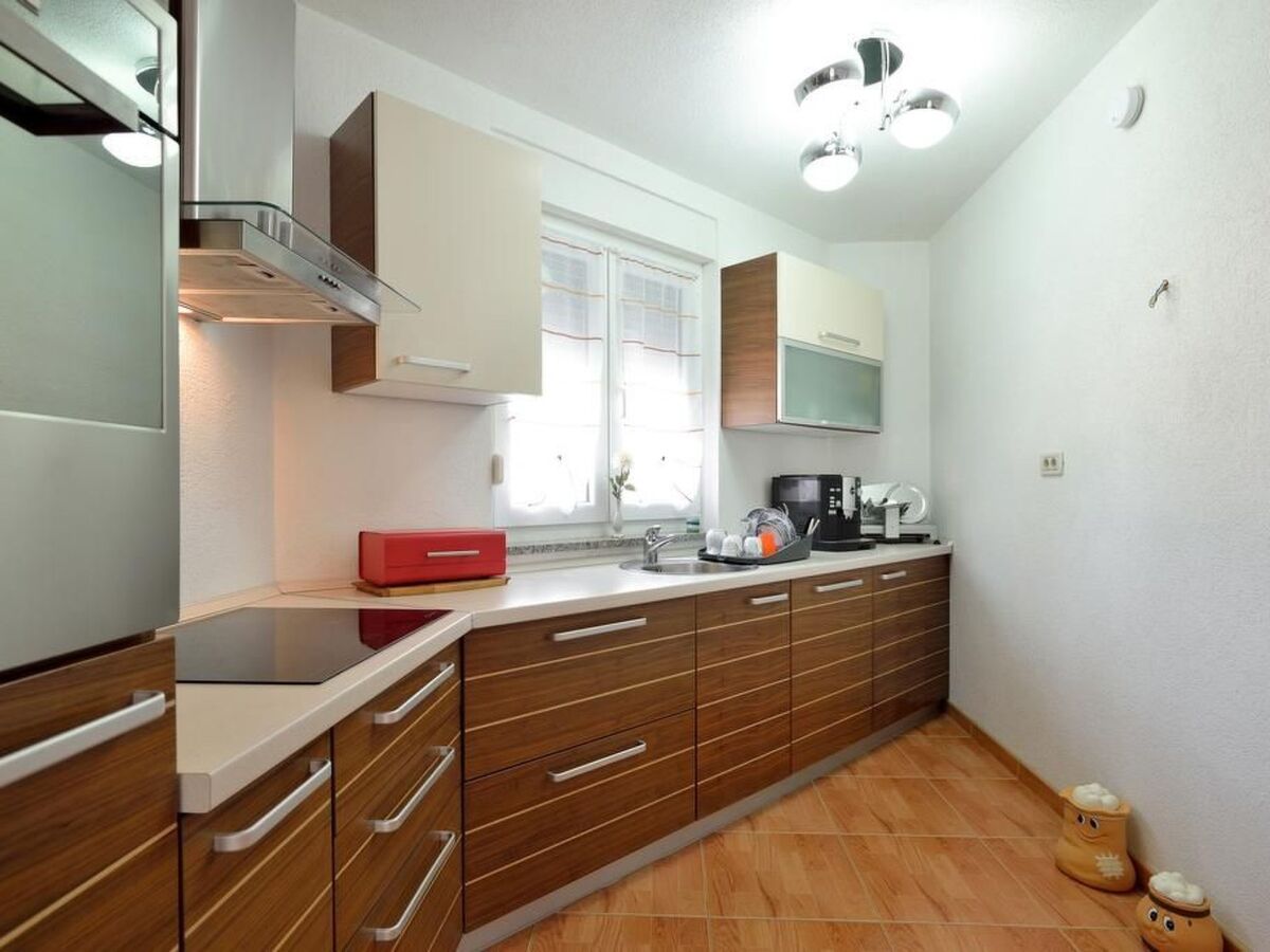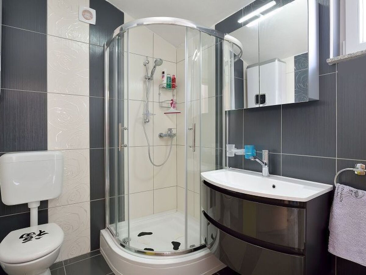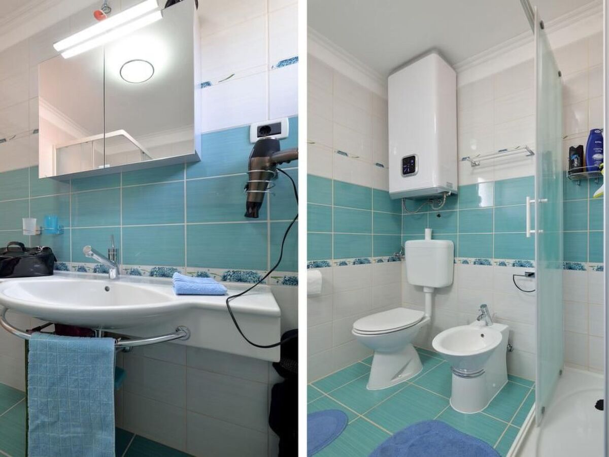 - The ground floor consists of the living room with a dining table, a fully equipped kitchen (ceramic hob, refrigerator, dishwasher, slicer, coffee maker), bedroom, a beautiful terrace overlooking the sea and a bathroom with shower and washing machine.