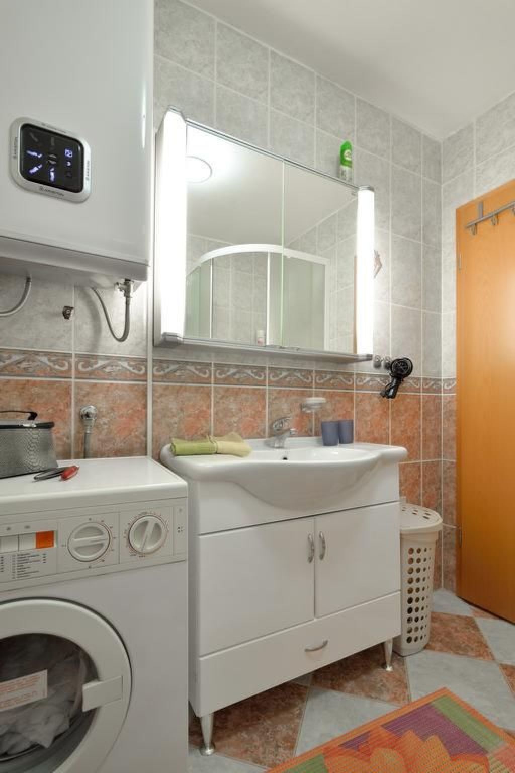 The accommodation has four bathrooms and a washing machine.