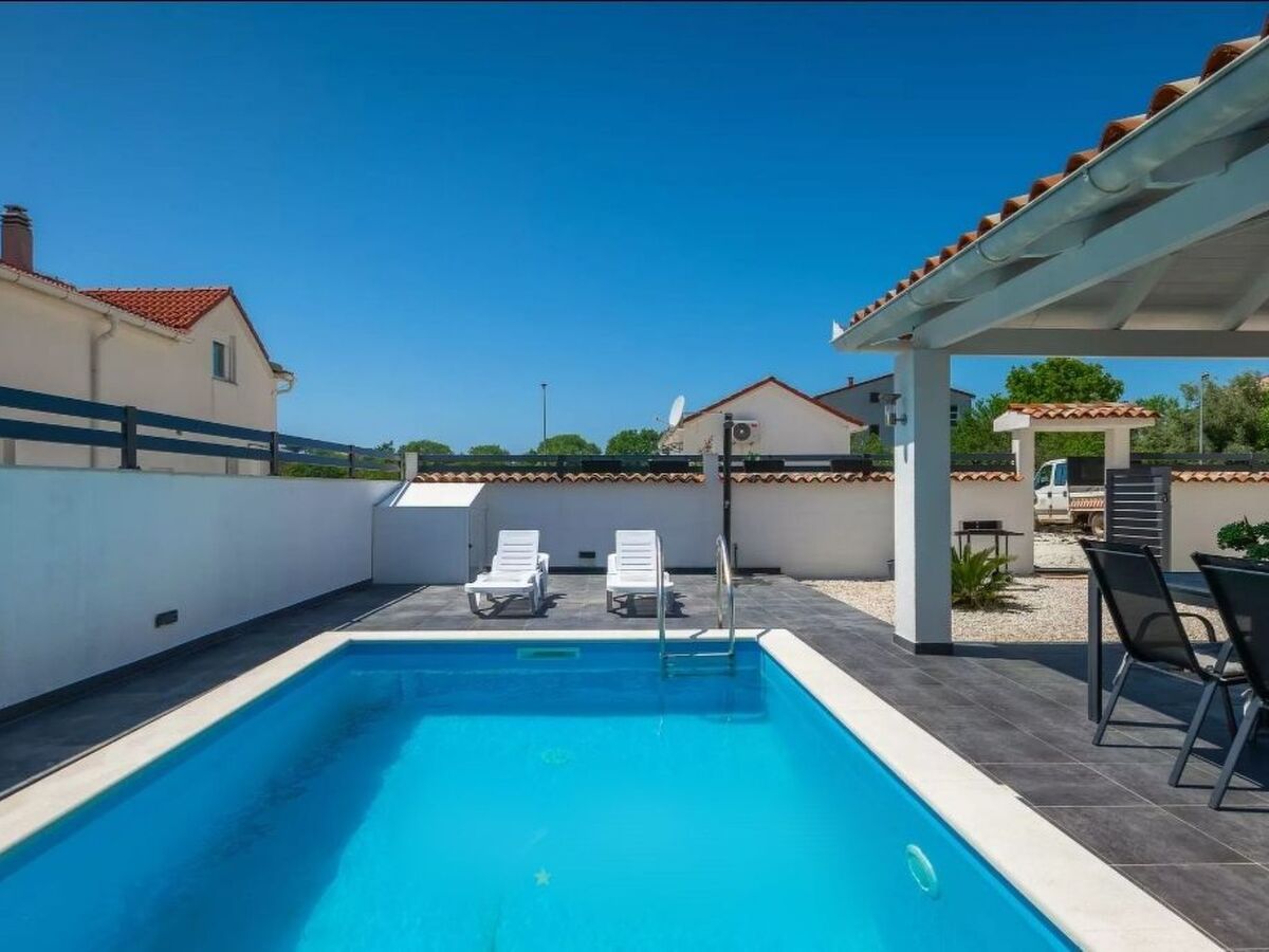 Outside, the beautiful private pool invites you to relax and sunbathe.