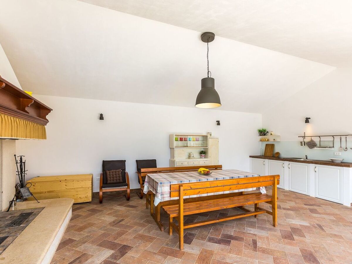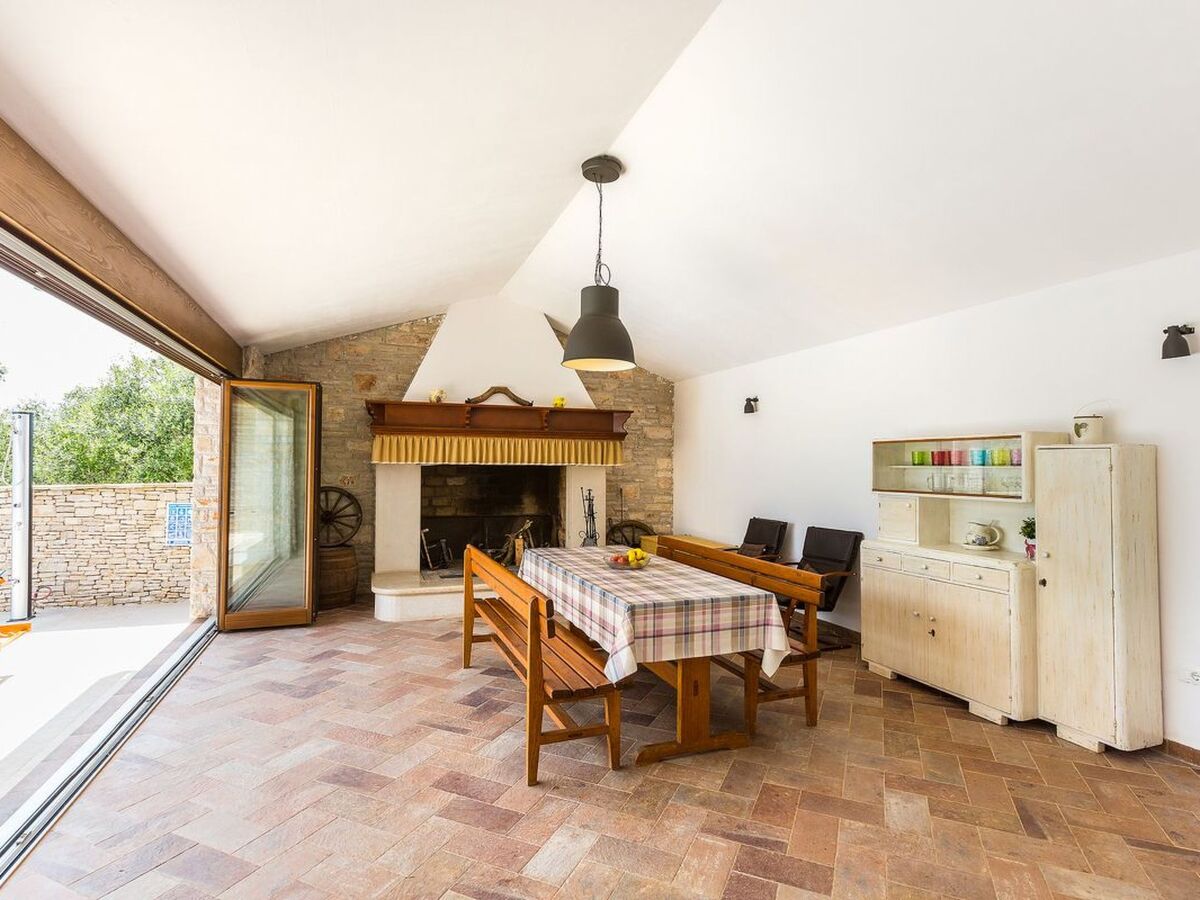 Peaceful countryside, fenced closed courtyard with olive trees, swimming pool and roofed terrace with big fireplace make this house an ideal choice for your next vacation.