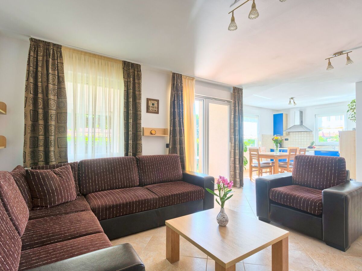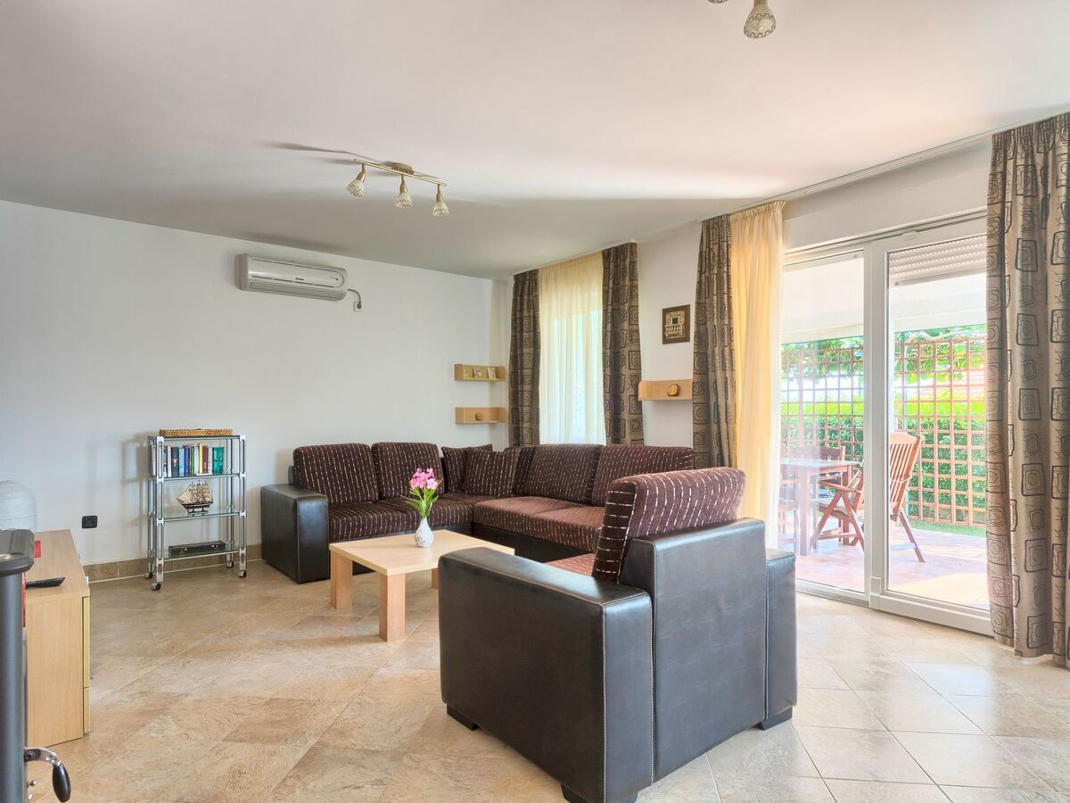 Le salon spacieux et climatisé a un canapé-lit, un téléviseur avec le satellite, une petite chaîne hi-fi et un lecteur DVD.