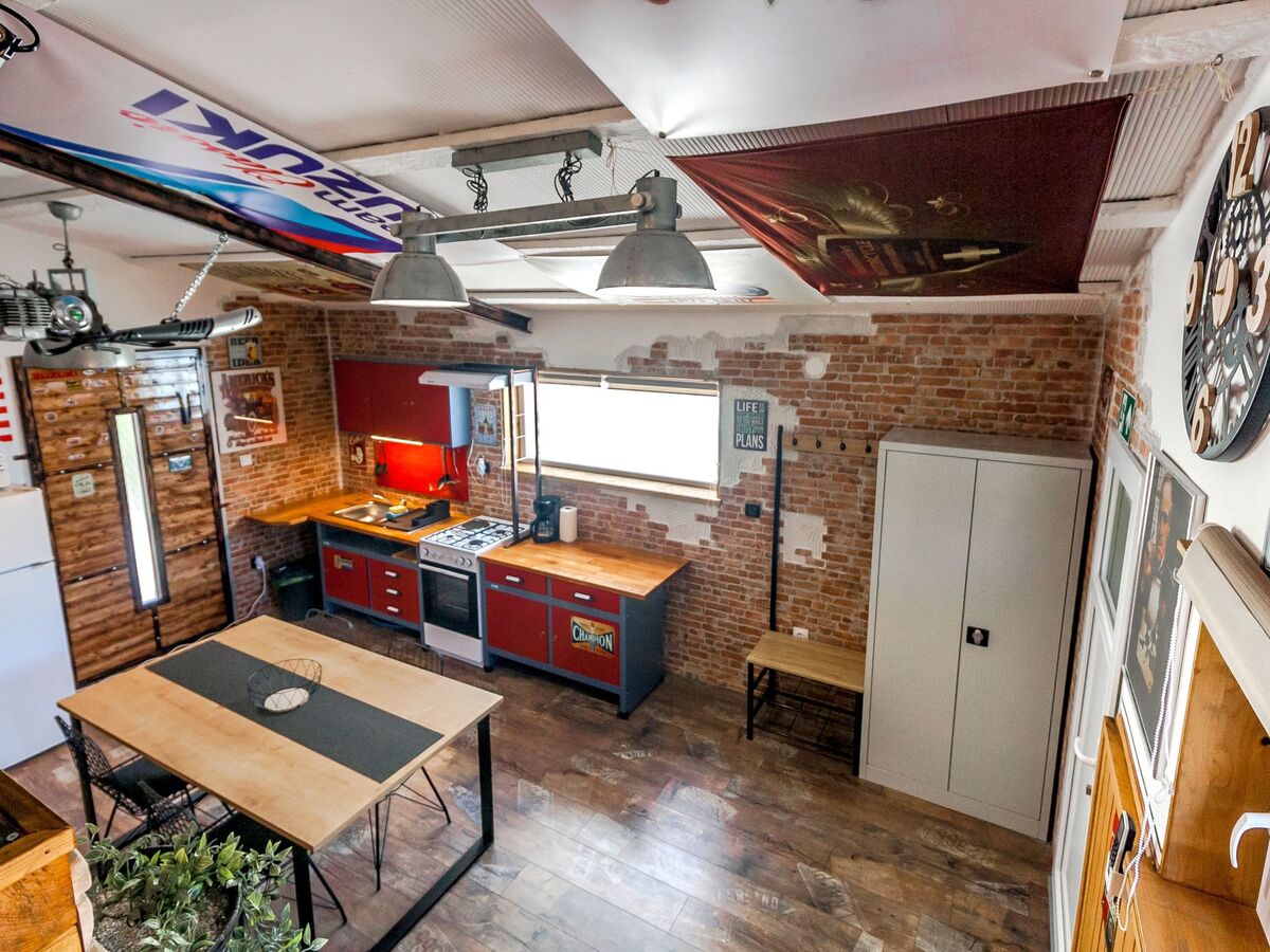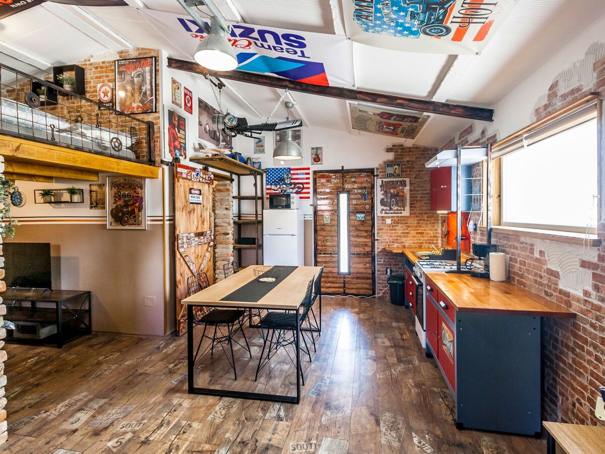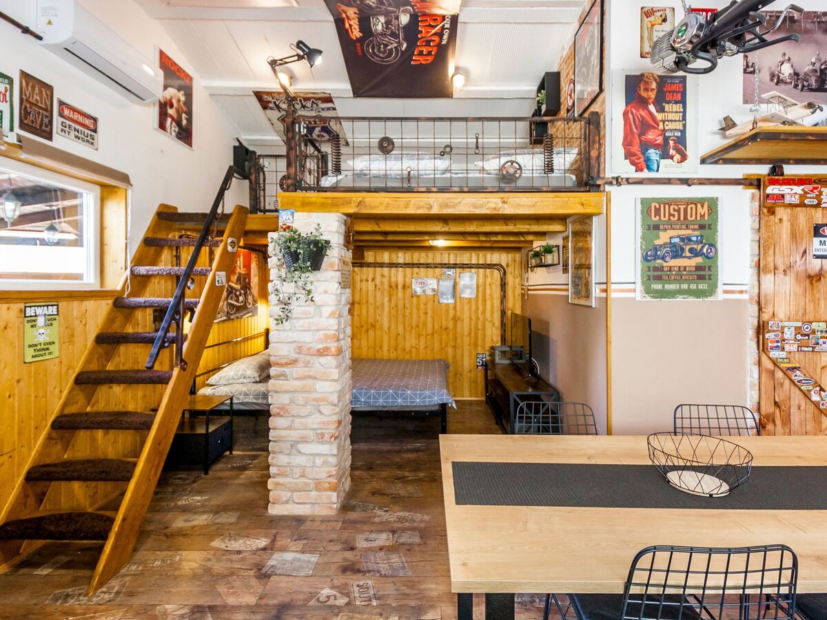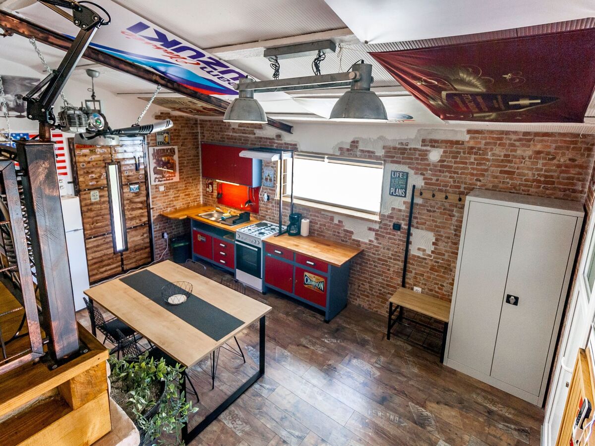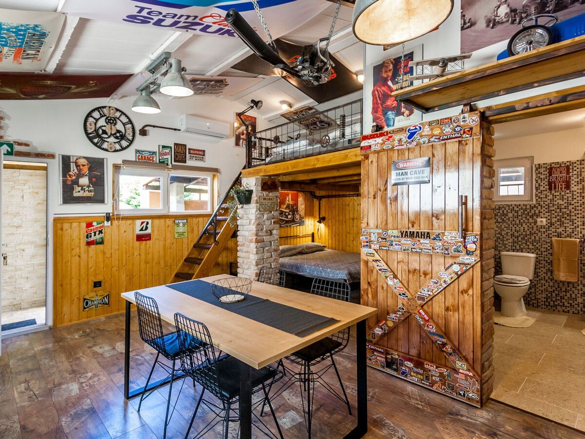 It is one kitchen, dining, living and sleeping space with a double bed (160x200cm) underneath, and a gallery with another double sleeping space (160x200cm).