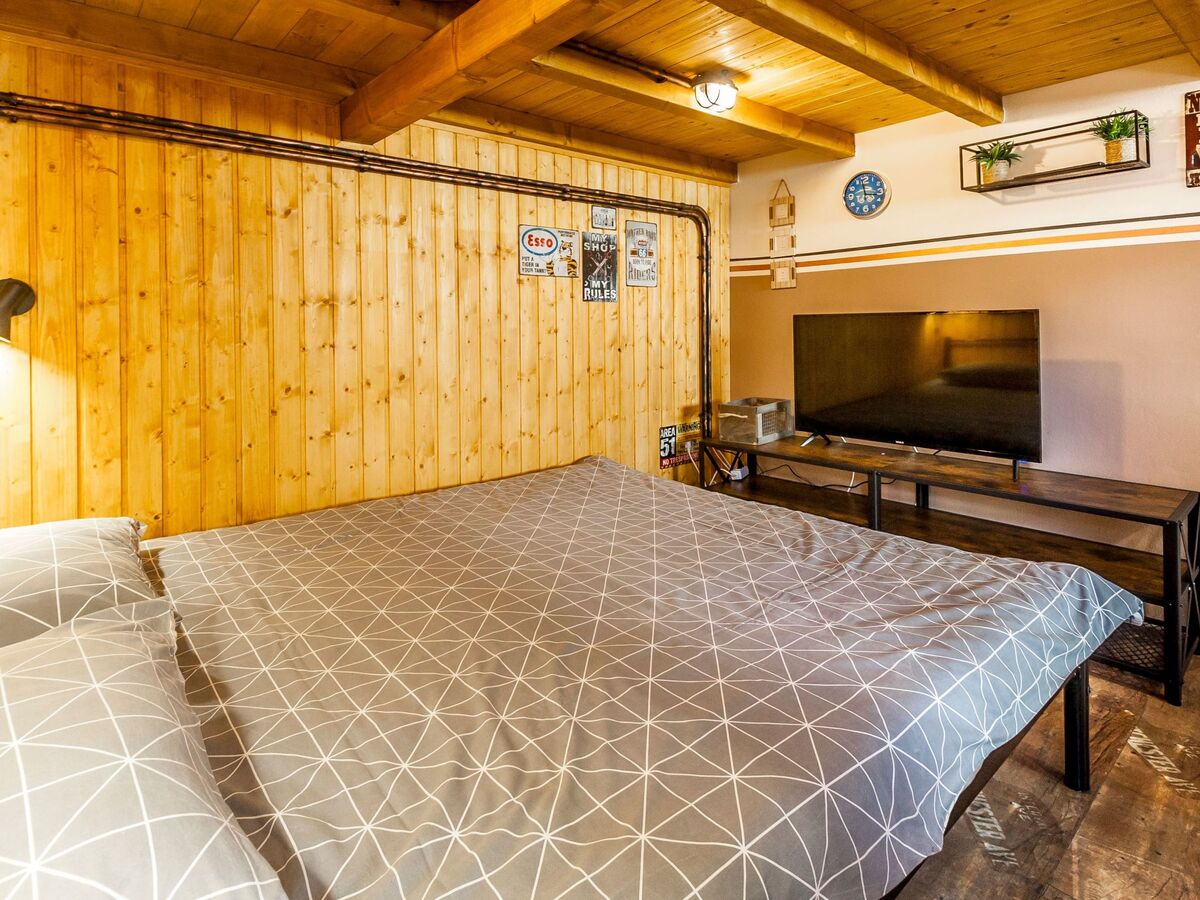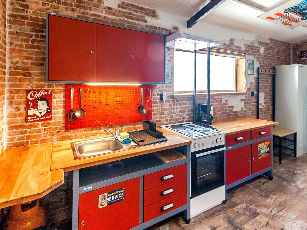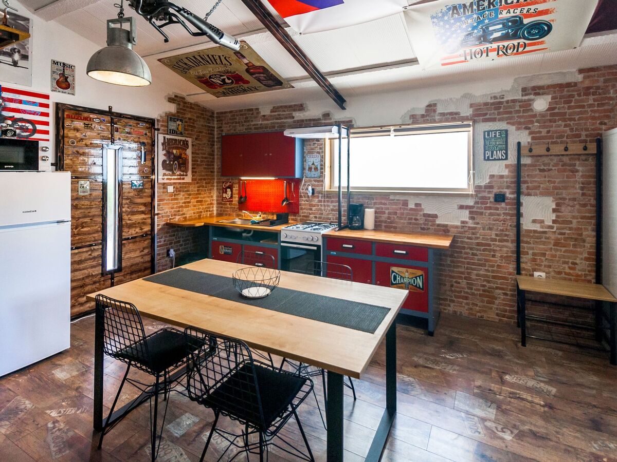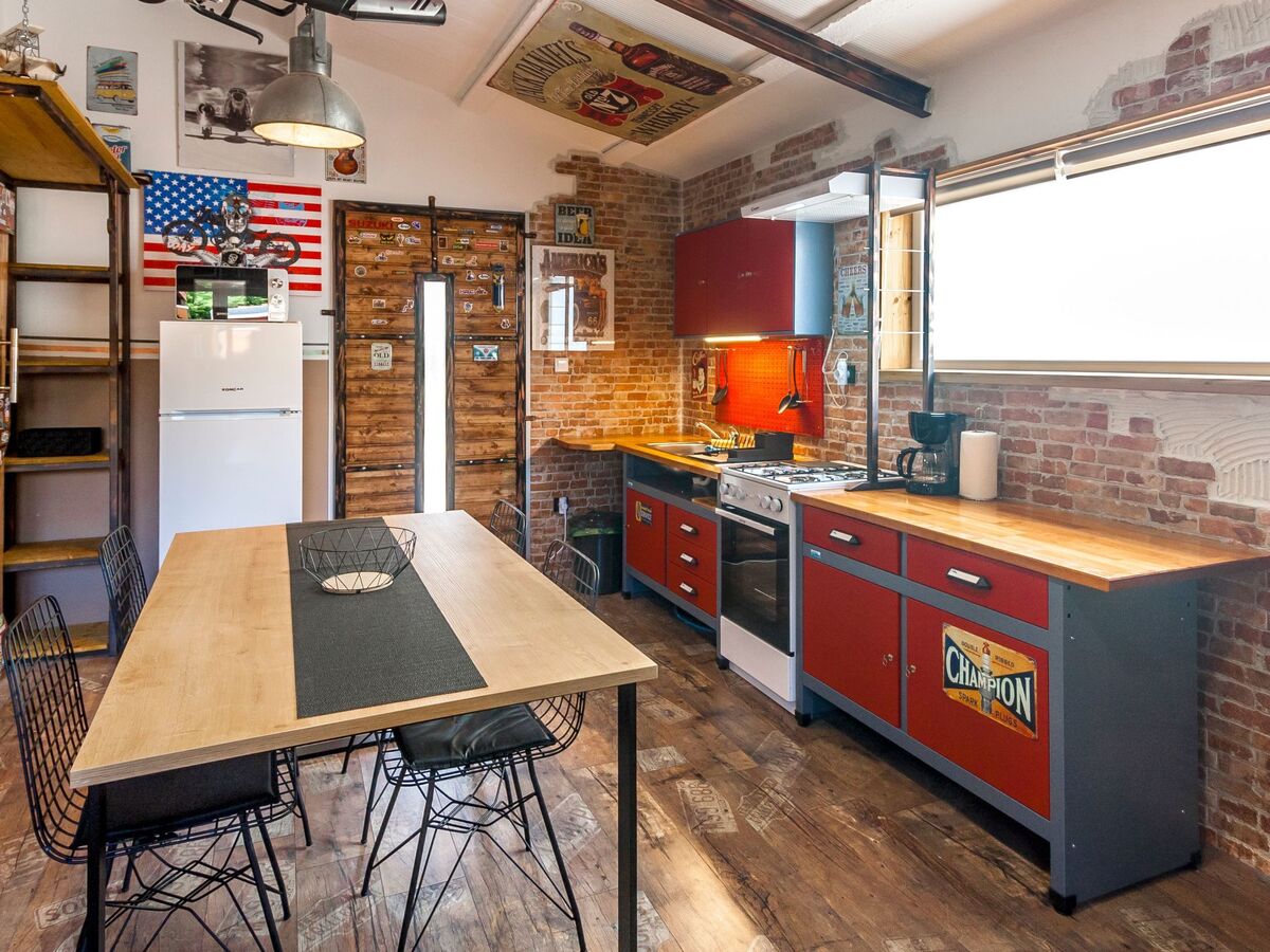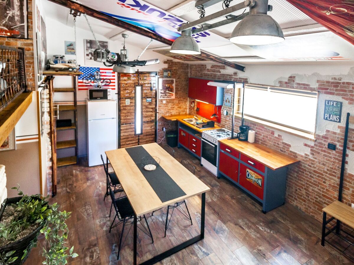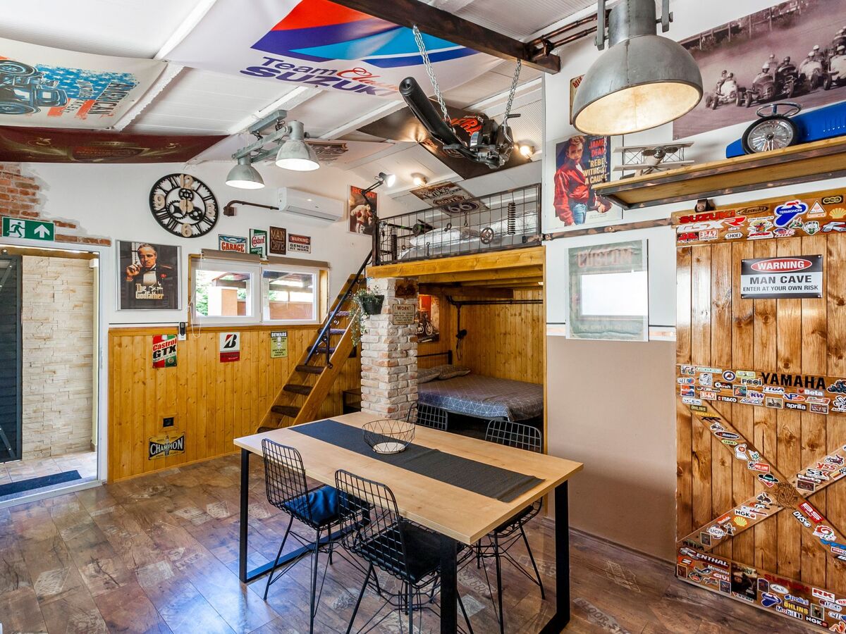 It is one kitchen, dining, living and sleeping space with a double bed (160x200cm) underneath, and a gallery with another double sleeping space (160x200cm).