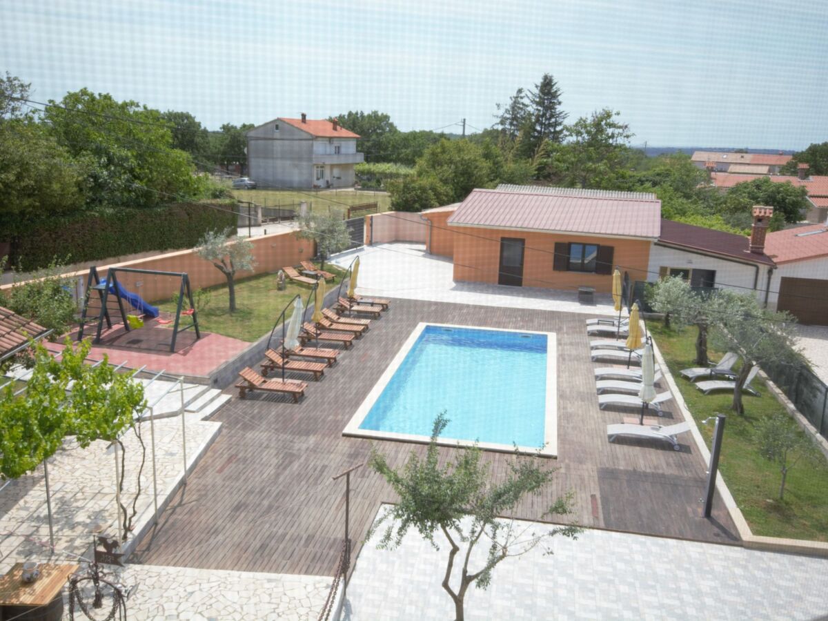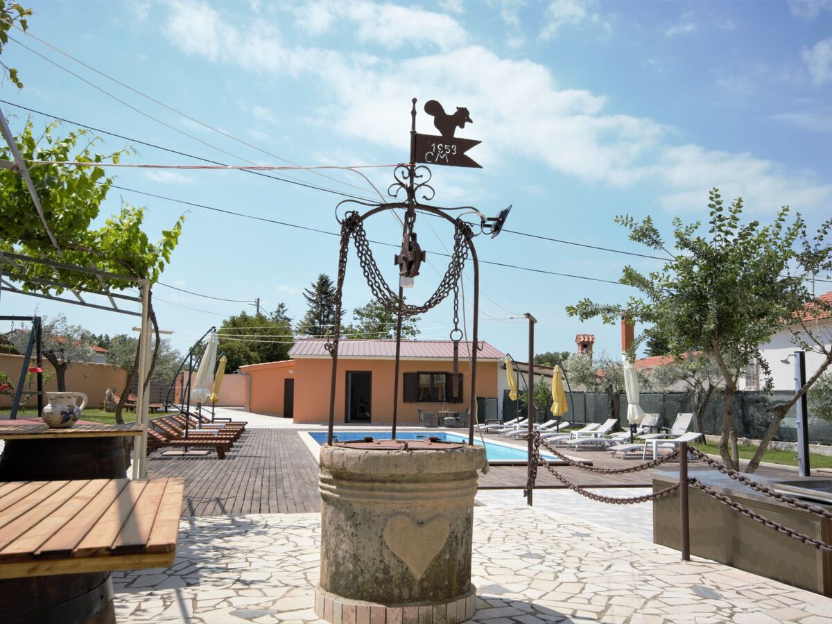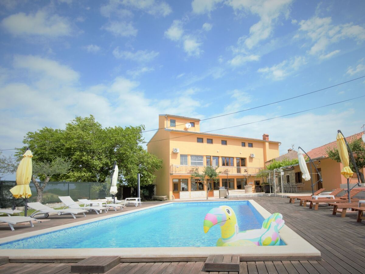The extra-large pool, surrounded by sun loungers, invites you to dive in or simply bask in the sun, while an outdoor shower adds to the convenience.