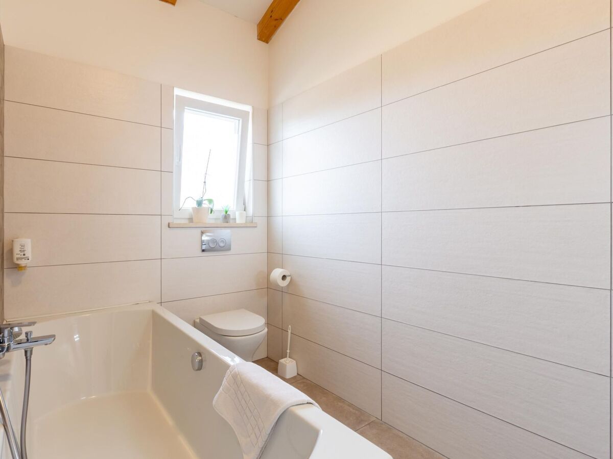 There are three bathrooms (two with showers and one with a bathtub), as well as a separate toilet for added convenience.