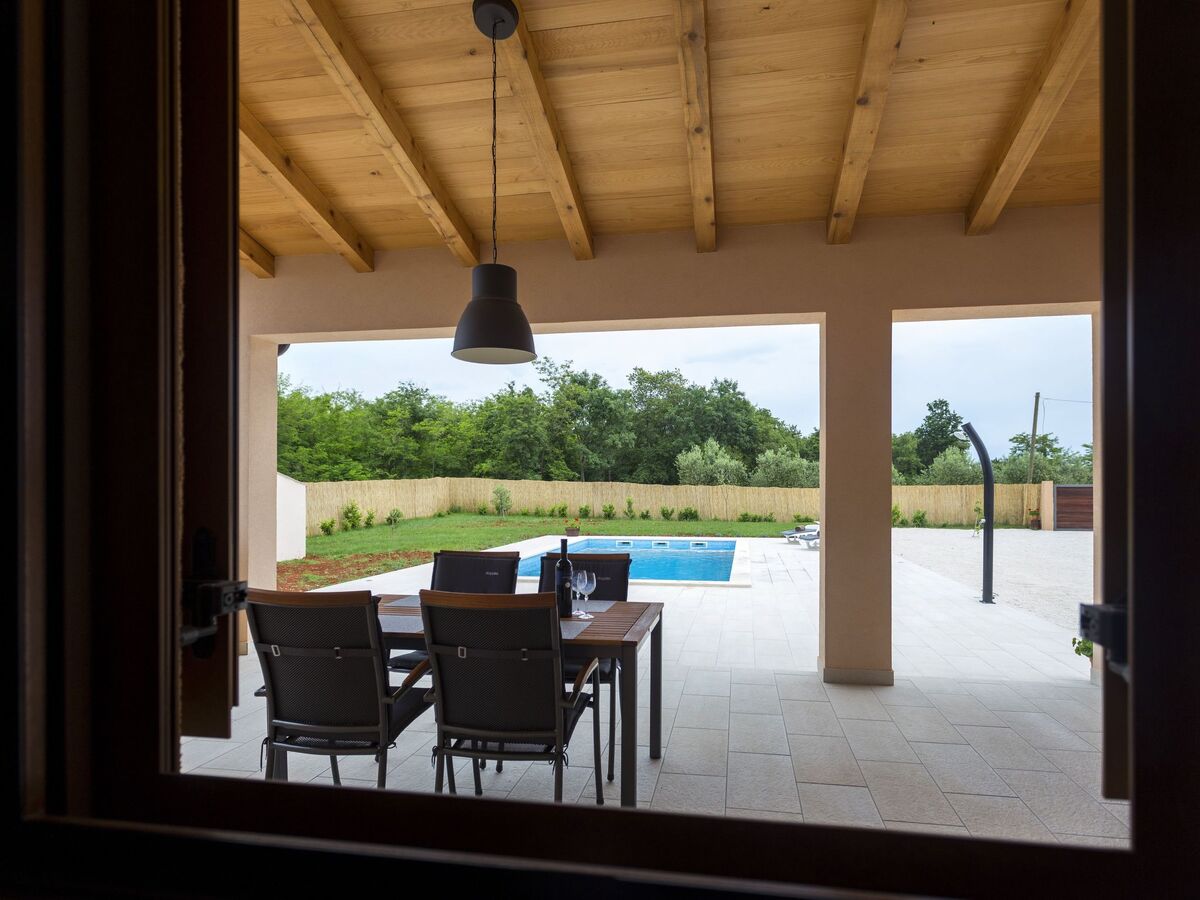 A covered terrace overlooking the large 8x4-meter heated pool is a great place to relax.