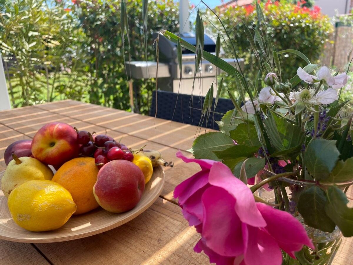 Der Außenbereich besteht aus einem schönen, großen privatem Pool 7,5 x 3,5 m (Mitte Mai - Ende September) mit umlaufender Poolterrasse und komplett eingezäuntem Grundstück, Außendusche, große überdachte Terrasse mit Gartenmöbeln, Sonnenschirm & Liegestühle, Grill und privatem Parkplatz (für 2 Autos) auf dem Grundstück.Auf den beiden Balkonen die von den Schlafzimmern zugänglich sind befinden sich zum entspannen schöne und bequeme Paletten- Loungemöbel.