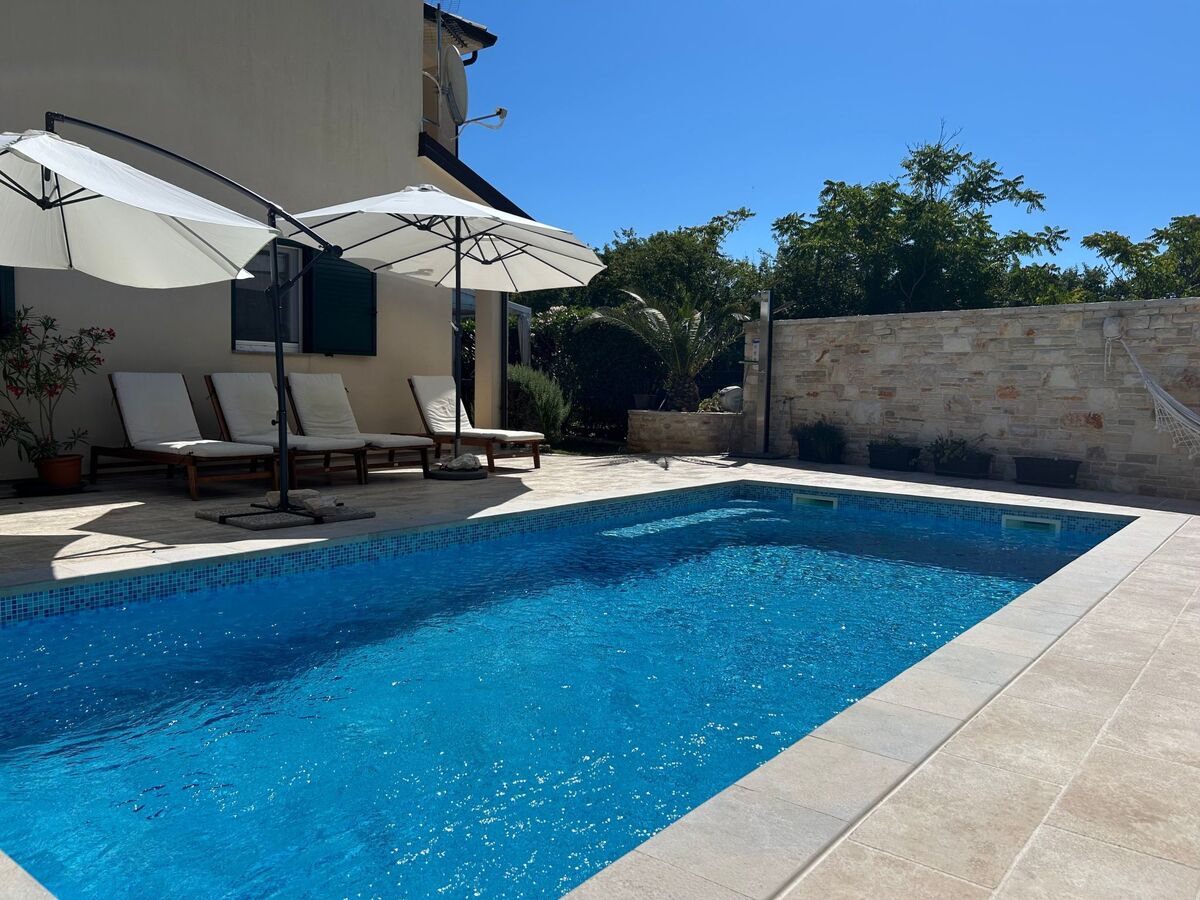 Das neue Ferienhaus für 6 Personen (Doppelhaus) Villa ELMASO 110 m²(ehemals Noah) auf 2 Stockwerken zur Alleinnutzung mit privatem Pool 7,5 x 3,5 m (Mitte Mai - Ende September) mit umlaufender Poolterrasse und komplett eingezäuntem Grundstück, Außendusche, große überdachte Terrasse mit Gartenmöbeln, Sonnenschirm & Liegestühle, Grill, Internetzugang Wifi, Waschmaschine und privatem Parkplatz (für 2 Autos) auf dem Grundstück.