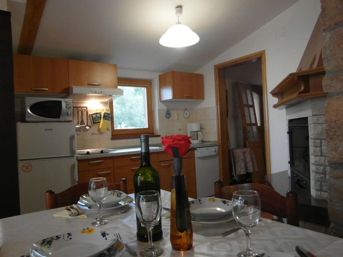In the air-conditioned living and dining room with open kitchen you will find a double bed measuring 160x200 cm, a TV with satellite channels, a fireplace and a dining table with chairs.