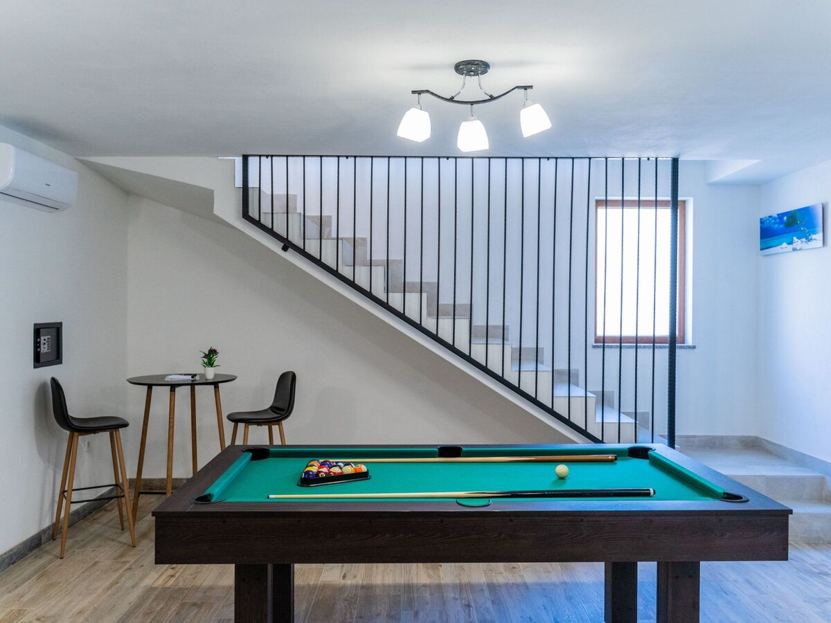 - 4th bedroom with double bed, private bathroom (toilette, shower, hair dryer, sink), and air condition storage room with washing machine, vacuum cleaner, and iron with ironing boardplay room with pool table and SAT TV, air condition safe