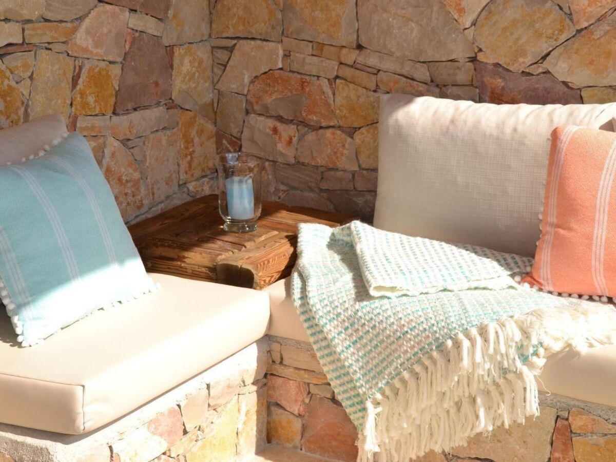 The covered terrace built with natural regional stonework gives a wonderful outdoor space to enjoy breakfasts or grill the fresh local fish on the barbeque.