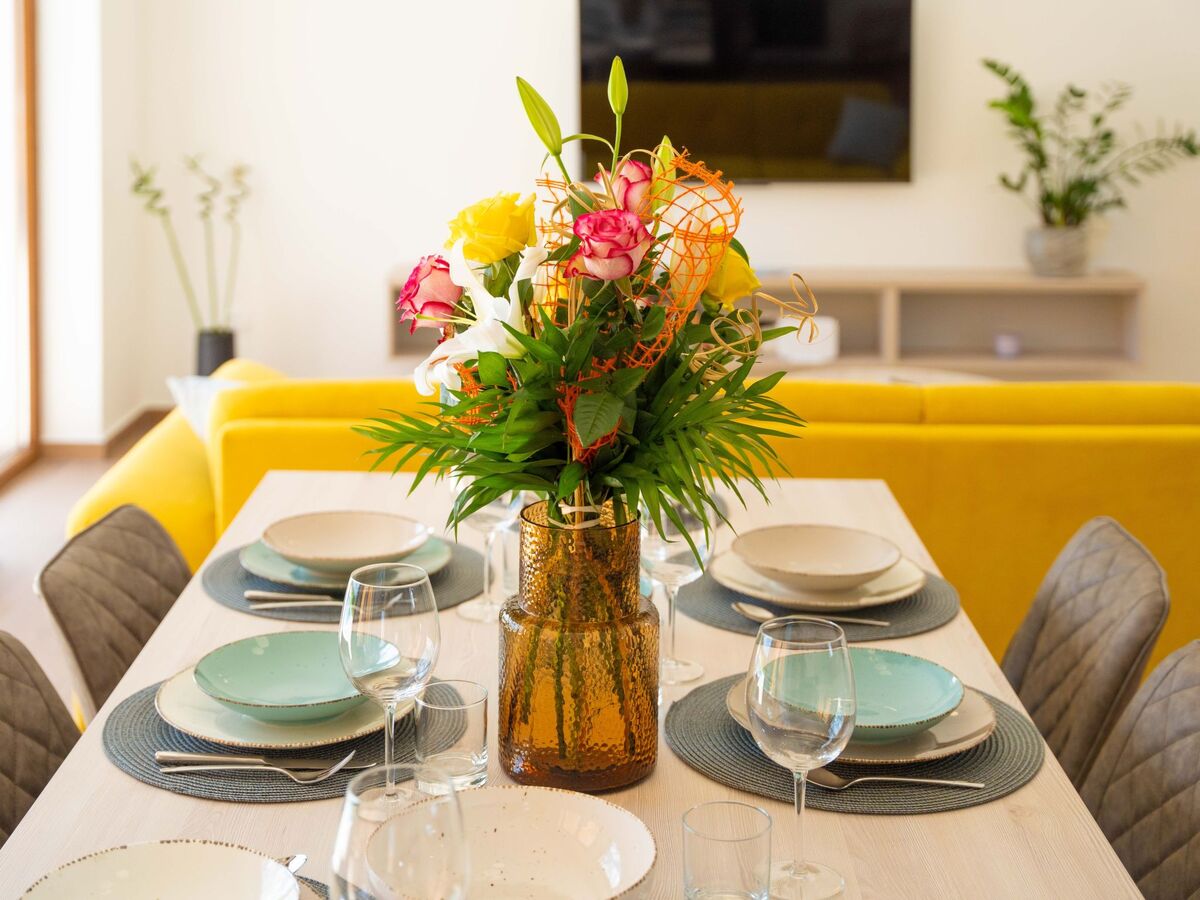 The adjacent dining area offers the perfect setting for intimate meals, while the fully equipped kitchen caters to all your culinary desires.