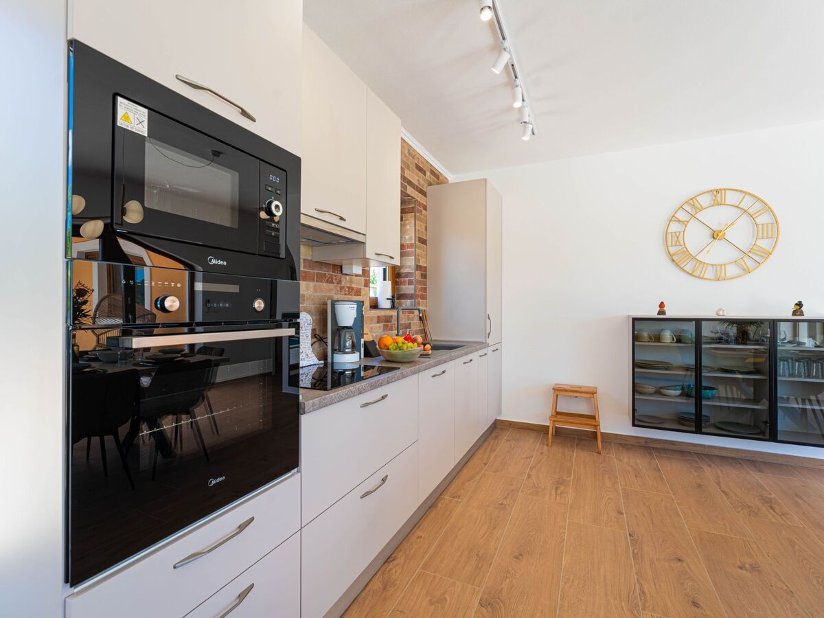 - kitchen: stove with 4 induction cooking rings, oven, fridge with freezer, dishwasher, toaster, microwave, oven, filter coffee machine, kettle, extractor hood