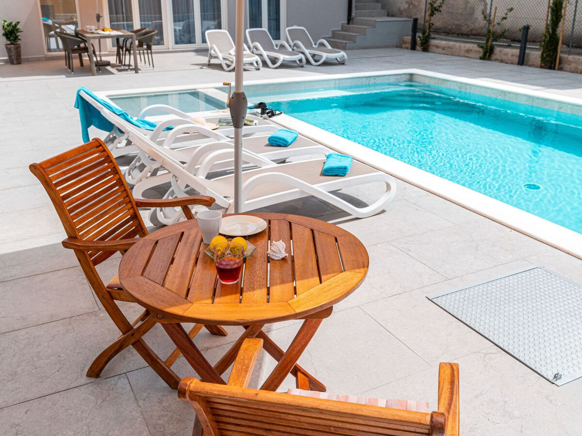 Directly from the living room you can access the sunny terrace with **spacious private pool** and an **outdoor barbecue** - perfect for relaxing afternoons and cosy evenings under the starry Istrian sky.