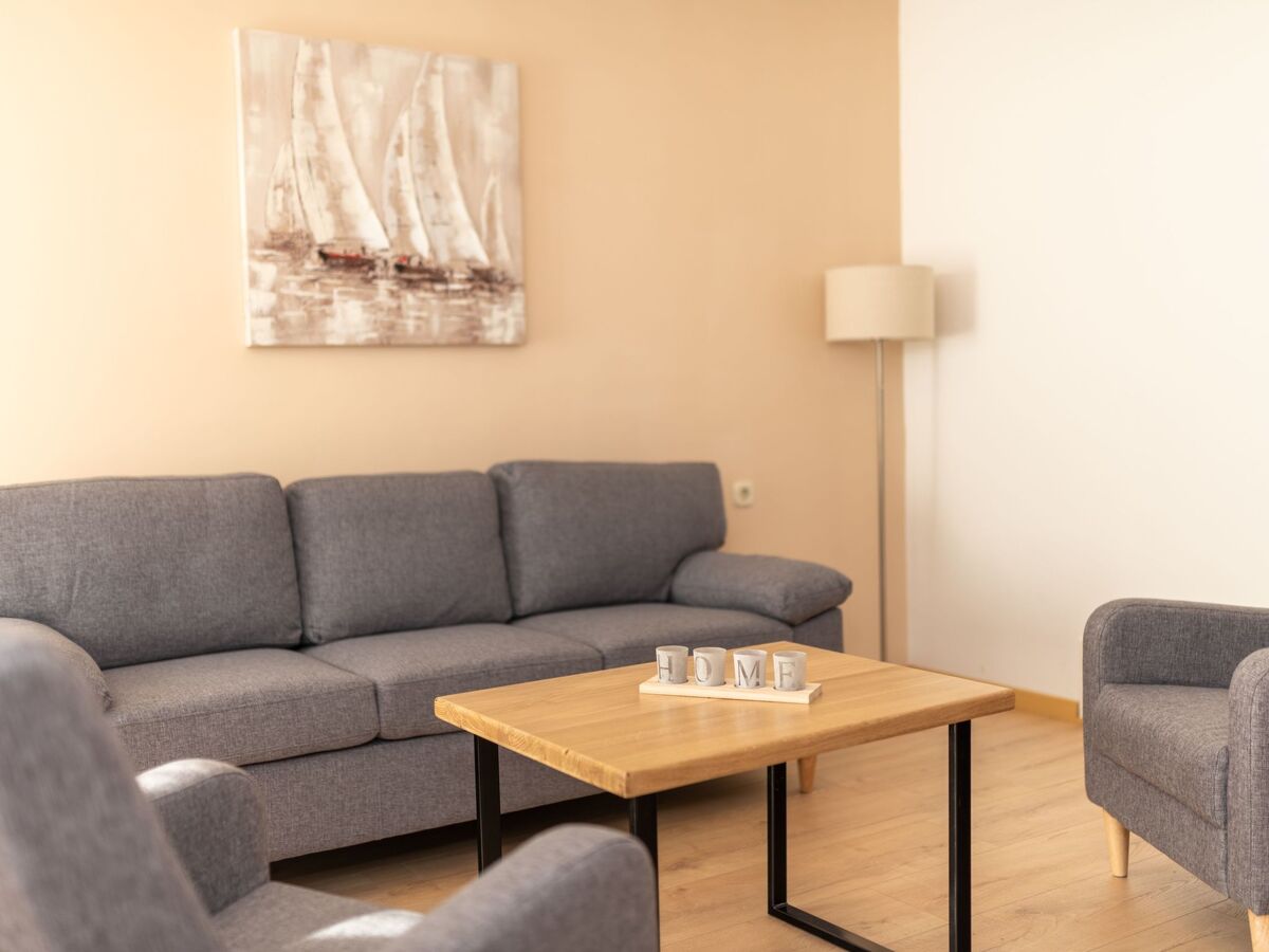 In the living room there is a nice sofa with a flat screen TV.