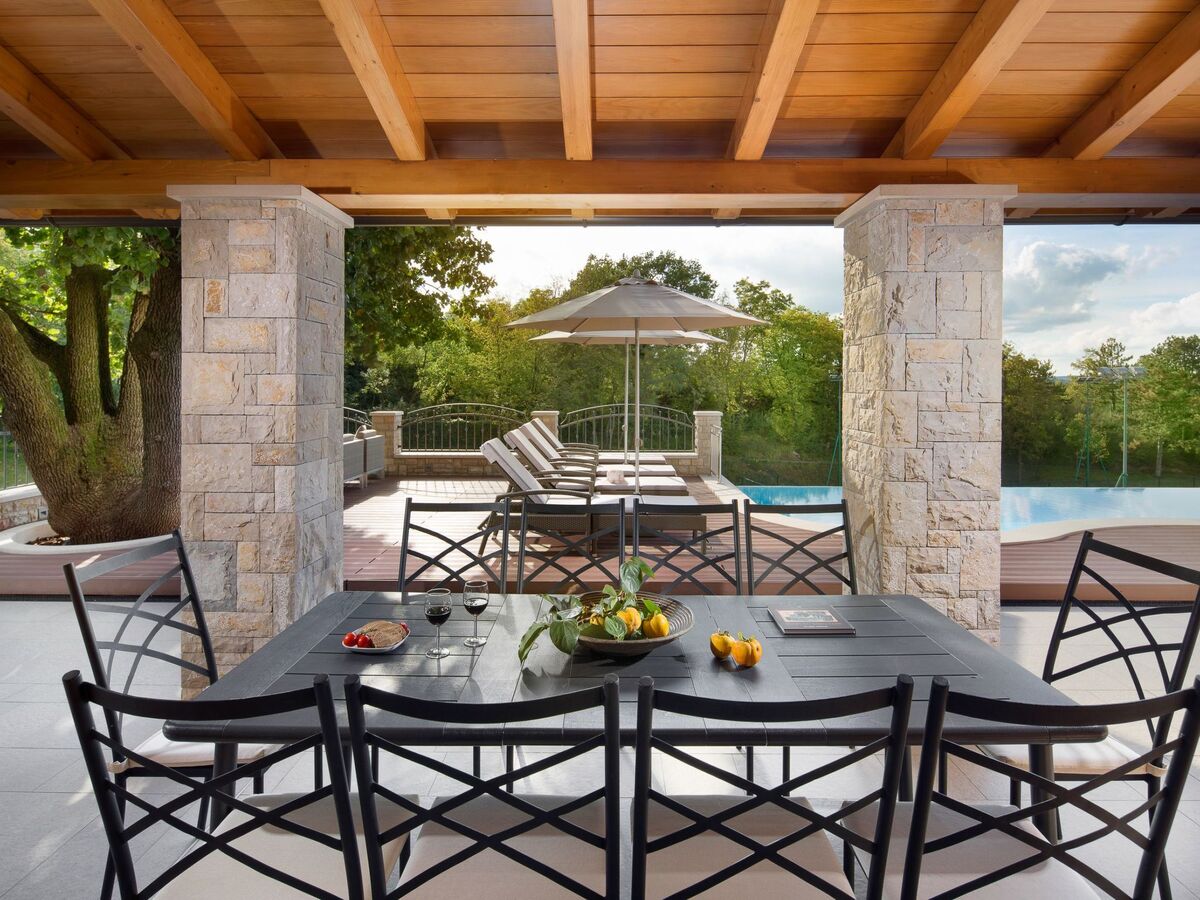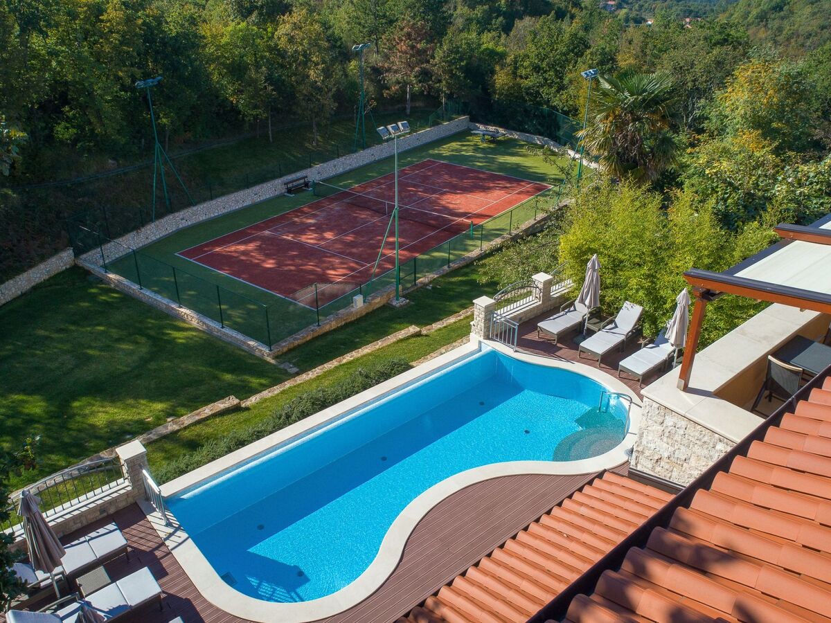 This imposing holiday villa is just outside Kapelica, nestled into the lush landscape along the sunny south-east coast of the Istrian peninsula.Luxury holiday villa with a private pool that can be illuminated at night, a sunny terrace with a traditional stone grill, its own tennis court and a 7-hole golf course in the enclosed and extensive garden area