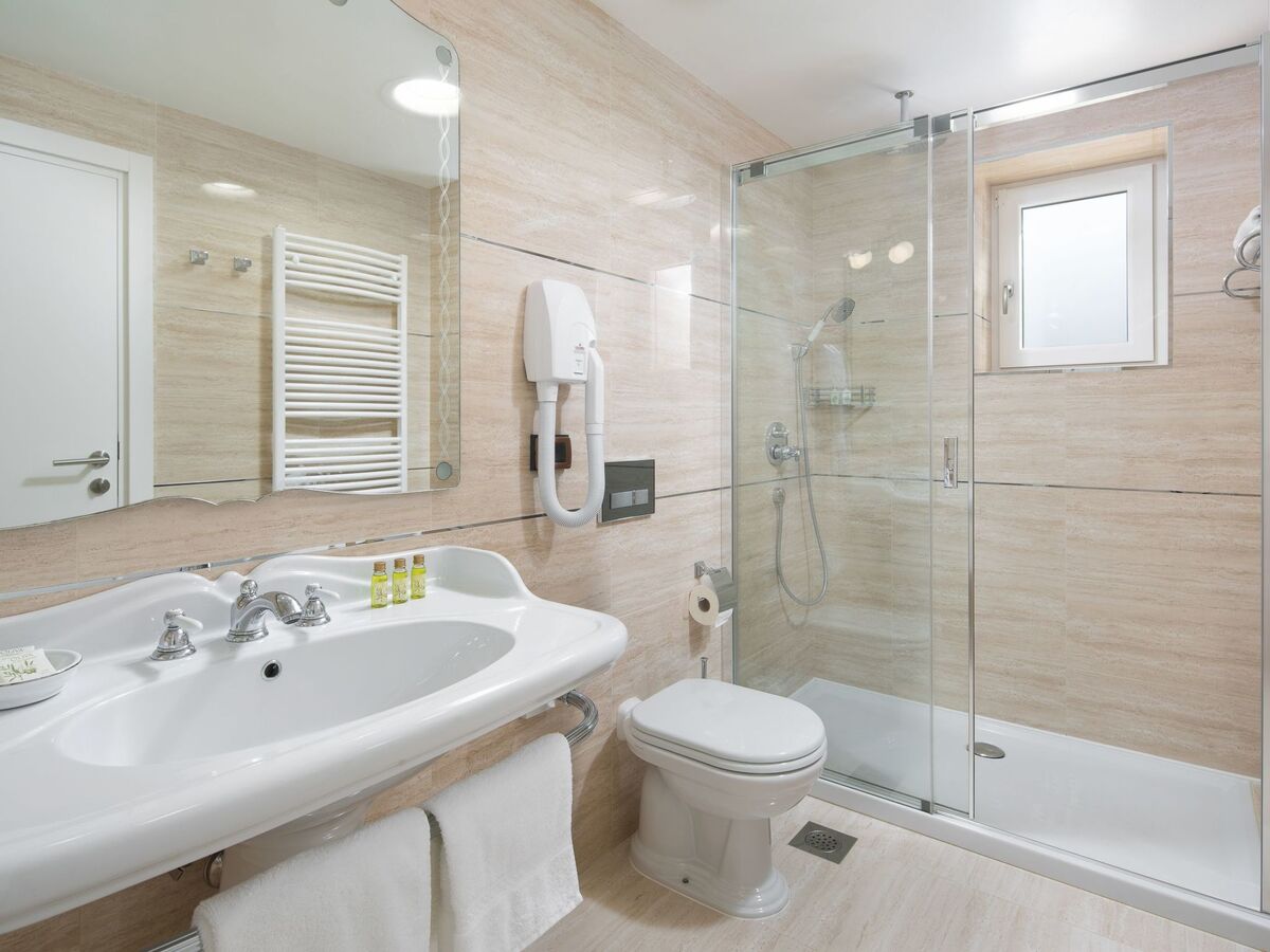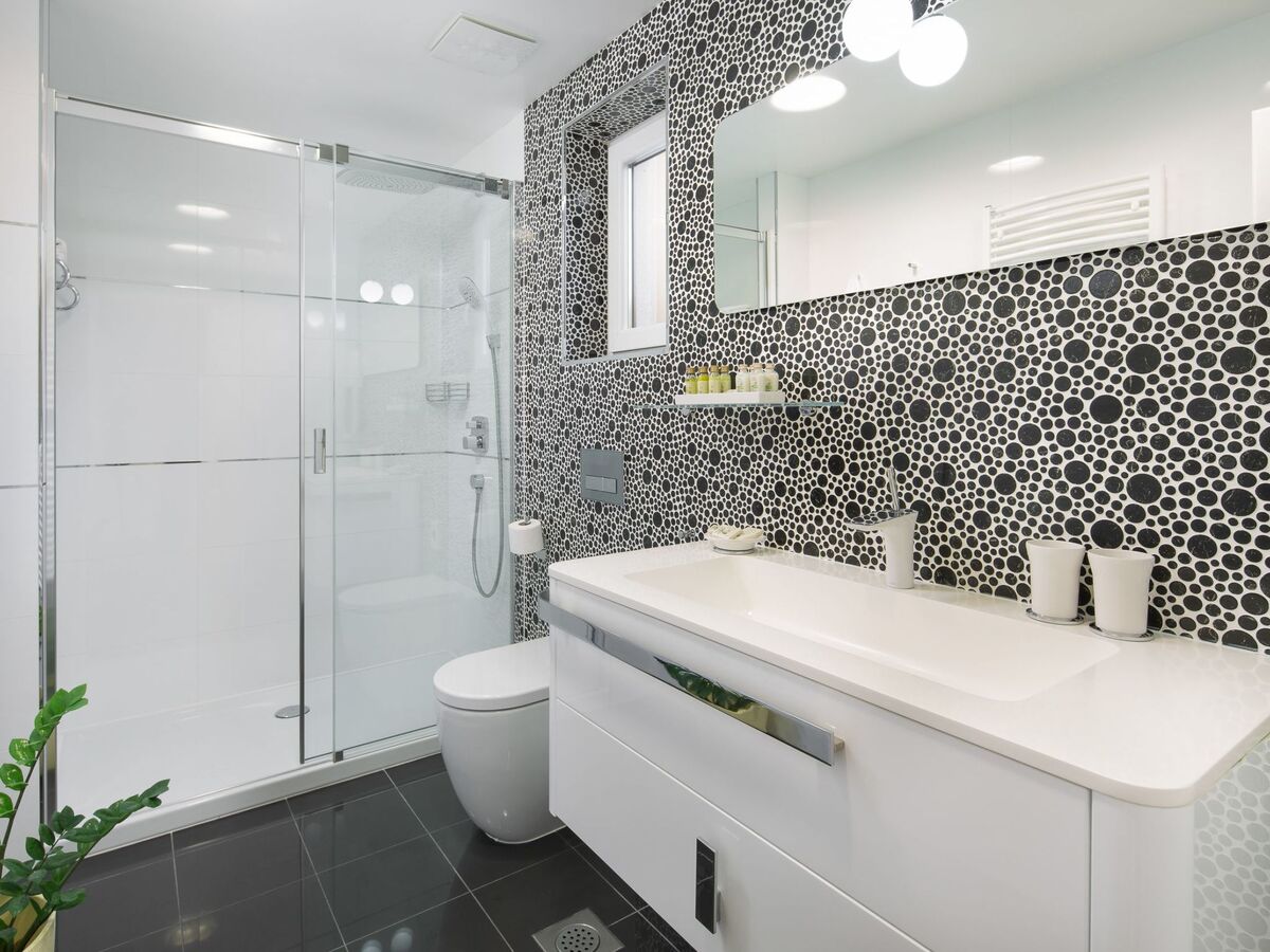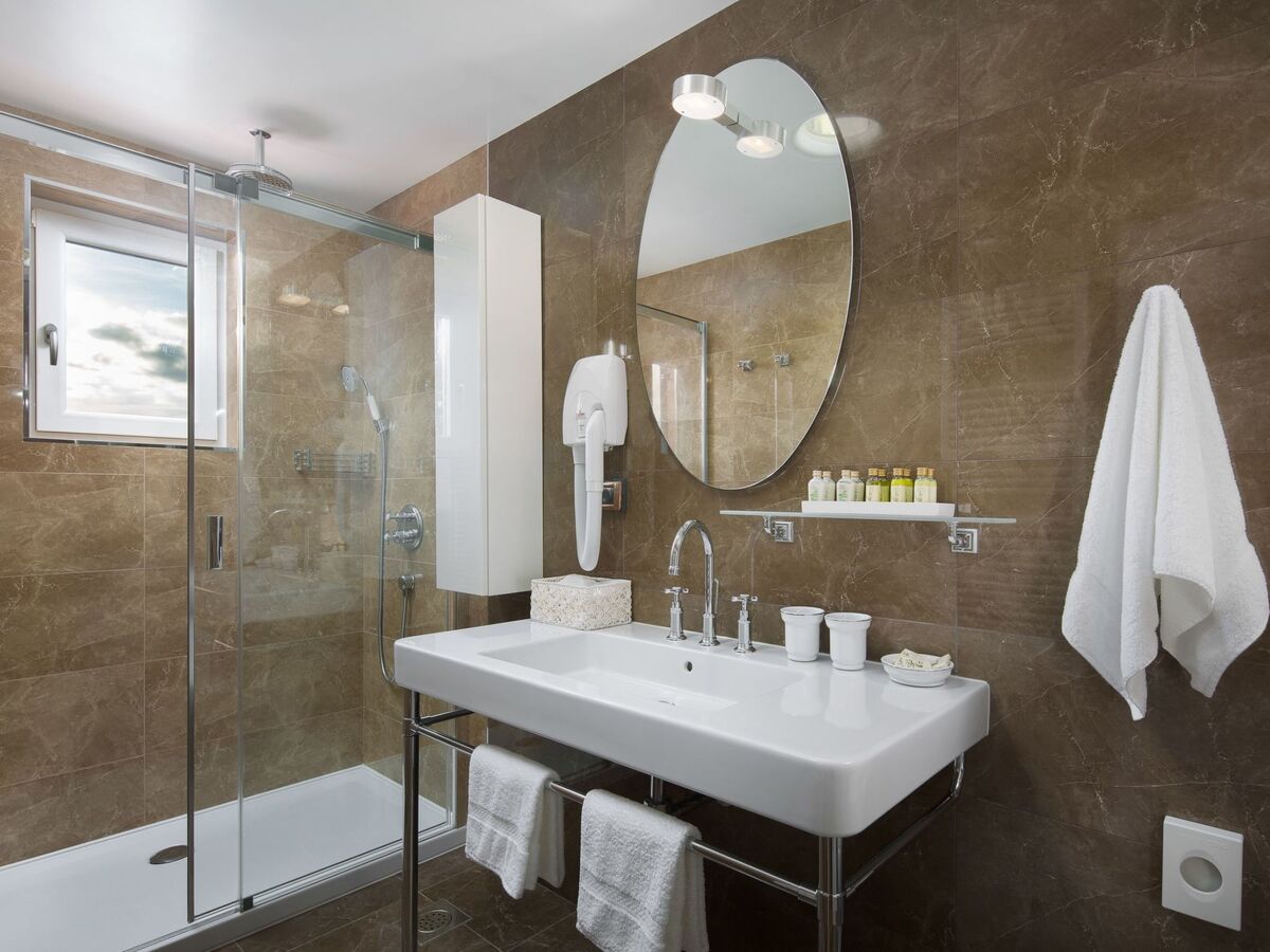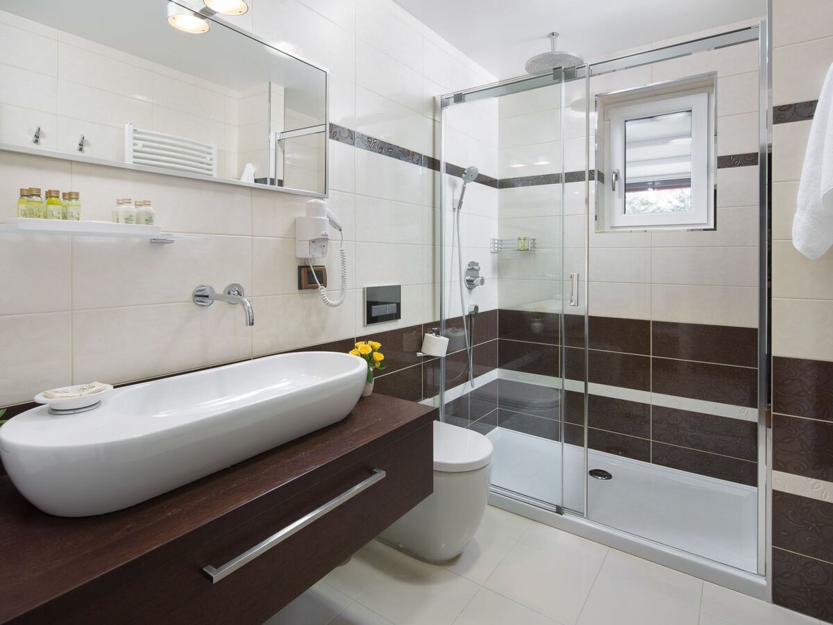 The four bathrooms are each fitted with an extra spacious shower, a wide washbasin with a cupboard underneath and a wall mirror, a hairdryer and a toilet.