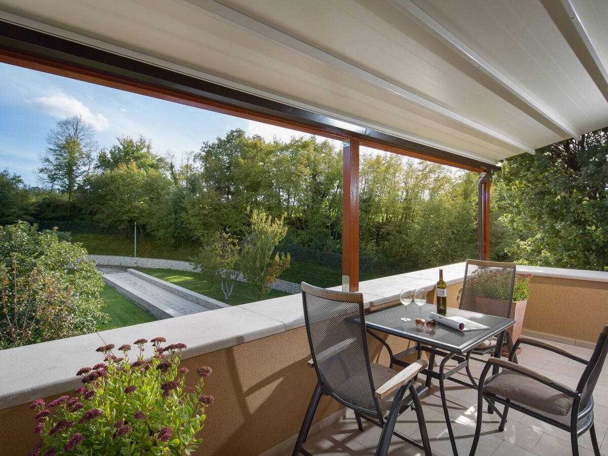 The balconies in front of the bedrooms on the upper floor afford a view over the beautiful hilly landscape.