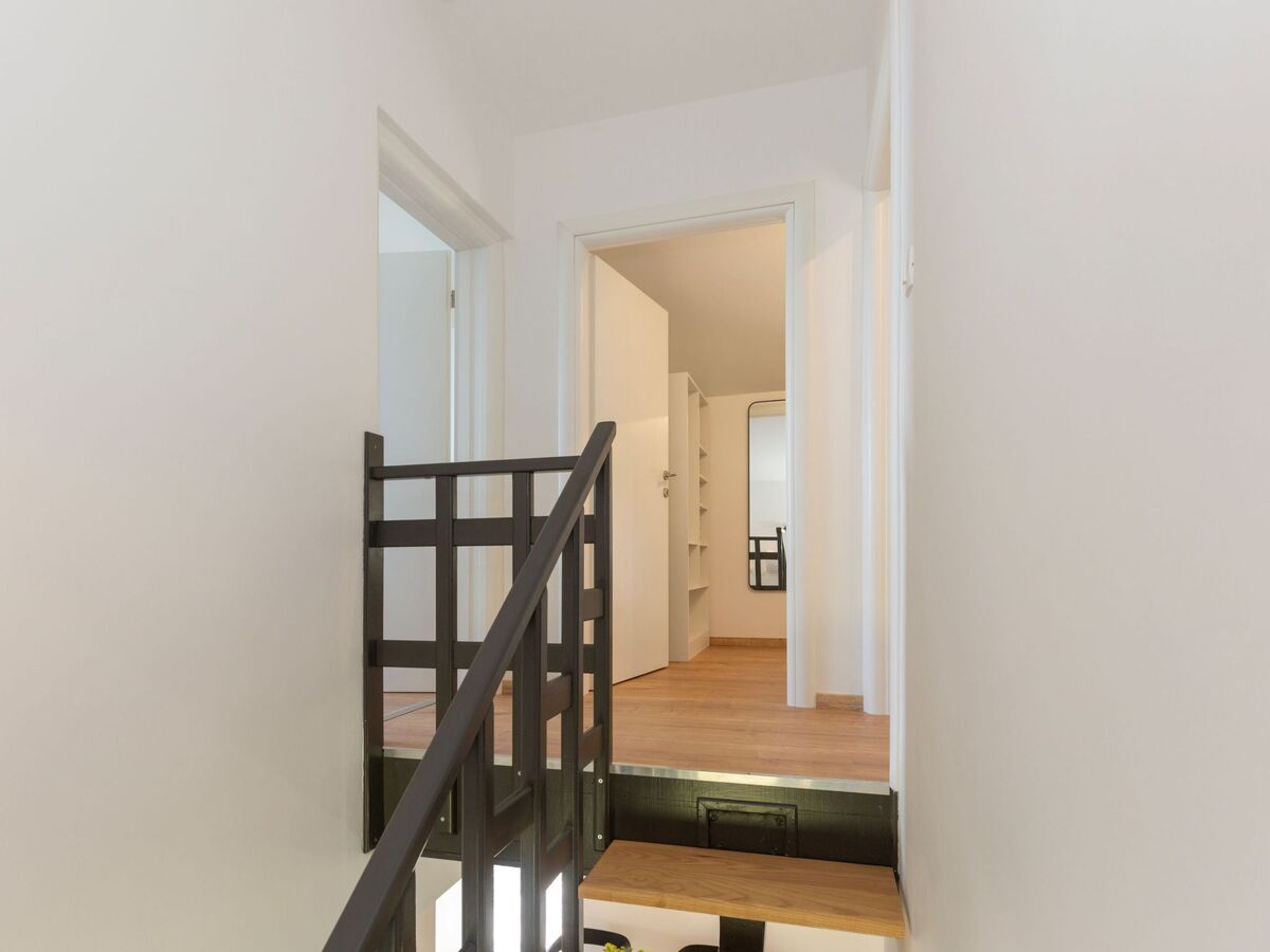 Upstairs, three rooms await you: one spacious room with a double bed (160 cm wide), and two smaller rooms with single beds (90 cm wide).