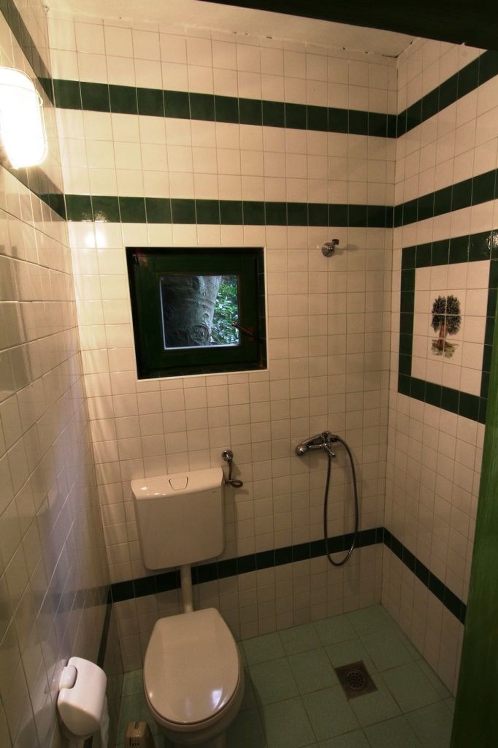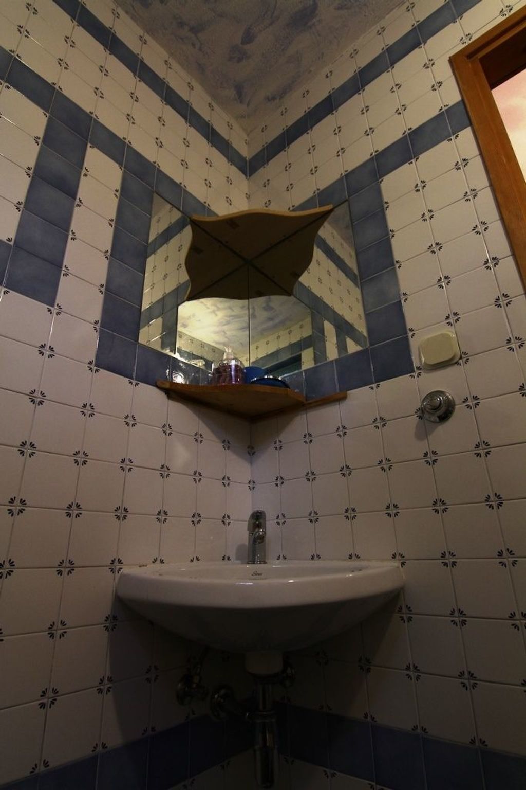 There is a convenient bathroom on the ground floor with a shower, a washbasin with a wall mirror, a hairdryer and a toilet.