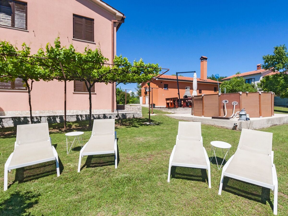 A traditional stone grill complements the outdoor amenities, providing an ideal setting for delightful al fresco dining and social gatherings under the clear Istrian sky.