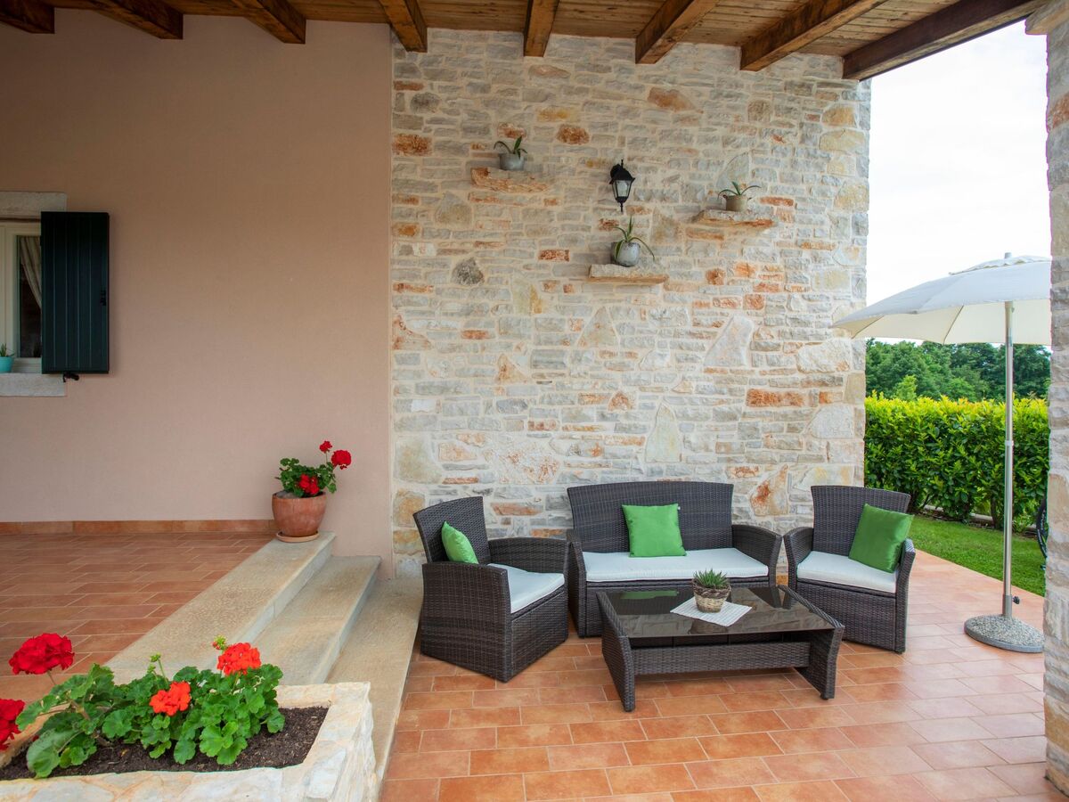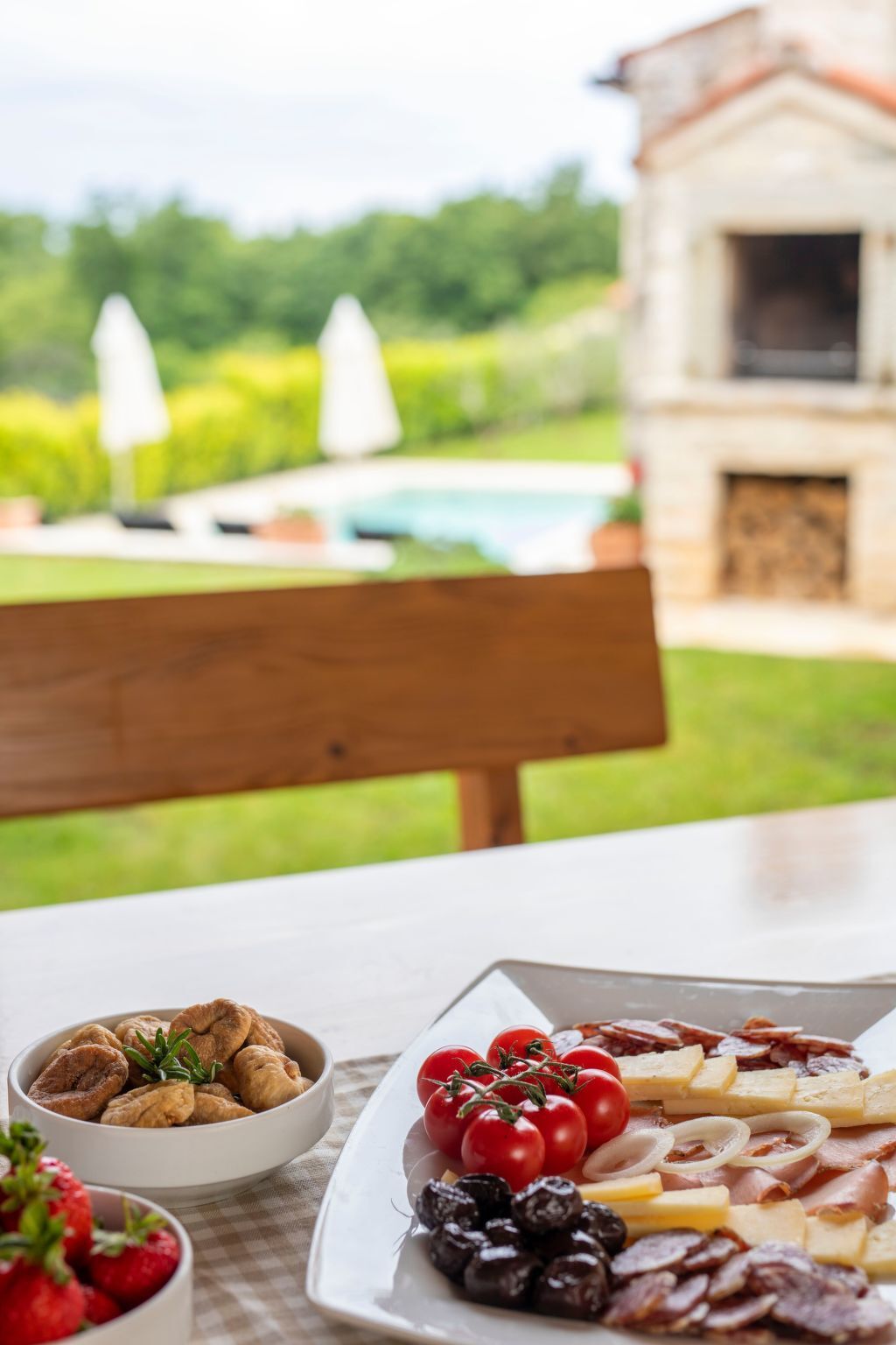 The exterior of Villa Milka is equally captivating, featuring a covered terrace with a dining area and barbecue, perfect for savoring traditional dishes accompanied by a glass of chilled Istrian Malvazija.