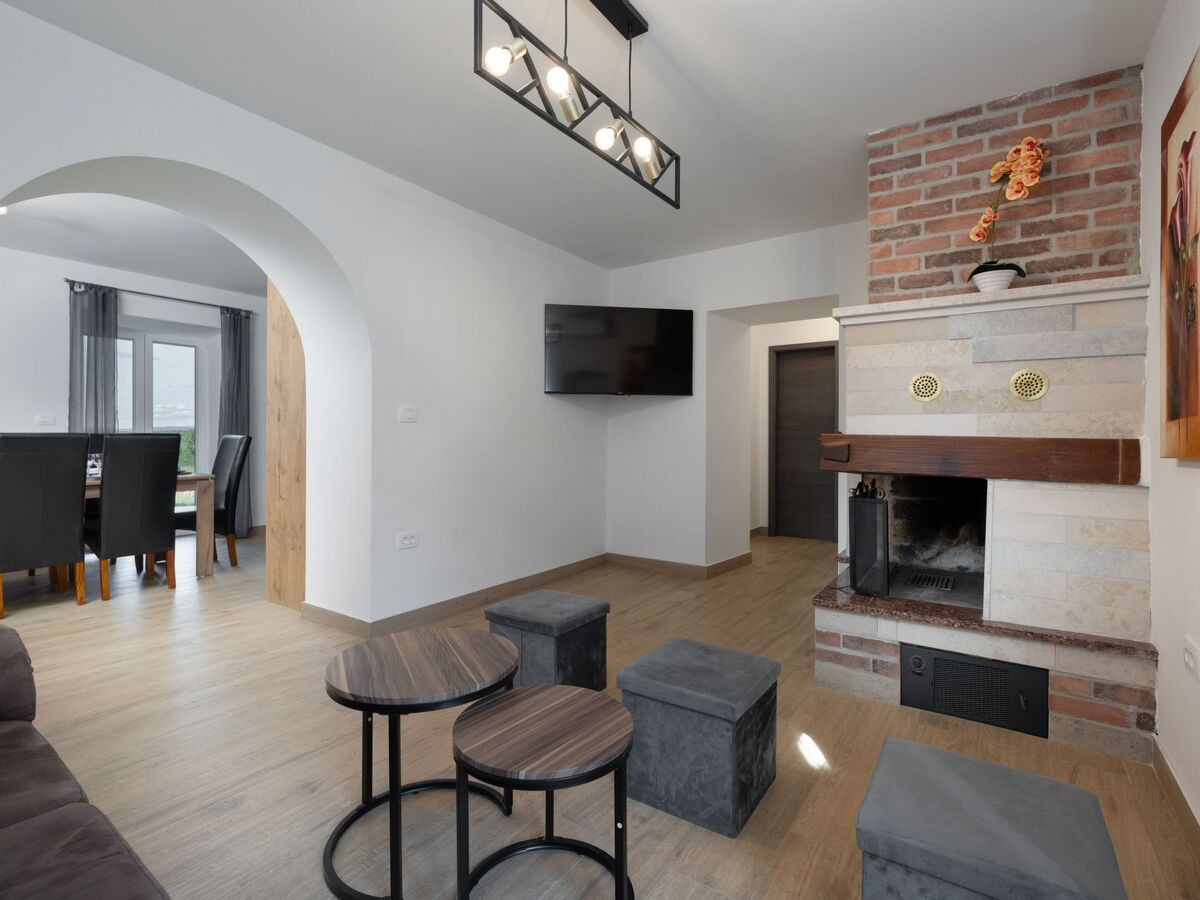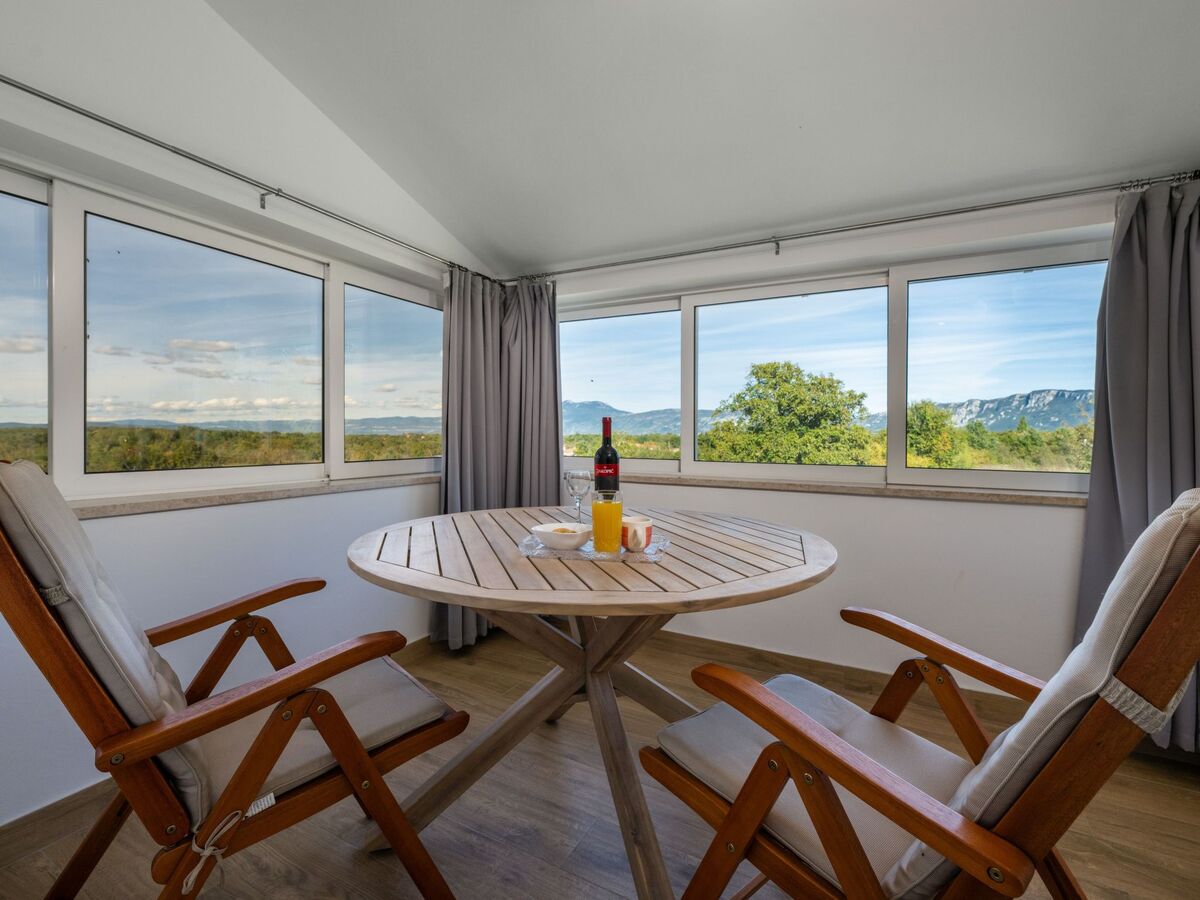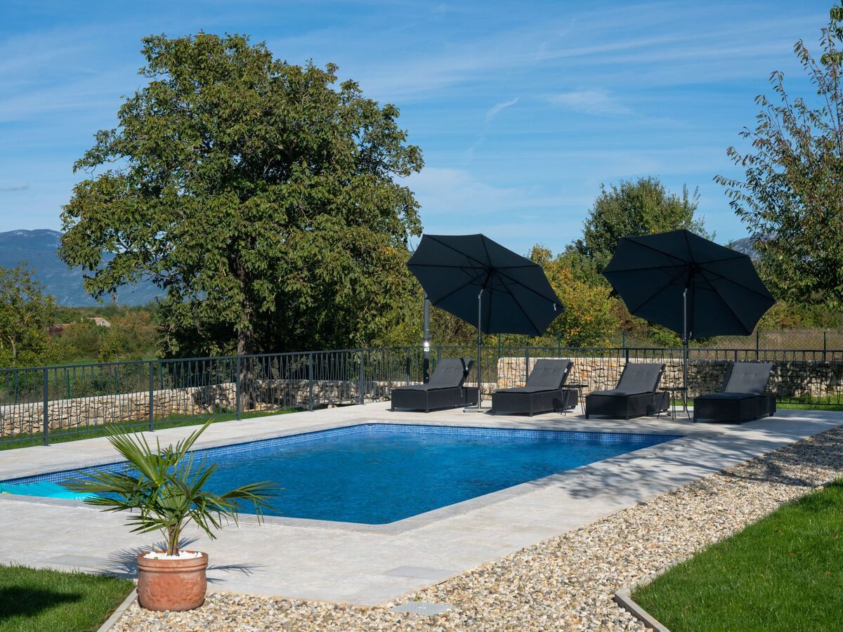 The property offers picturesque views of the mountain Učka and surrounding countryside, enhancing the relaxing ambiance.