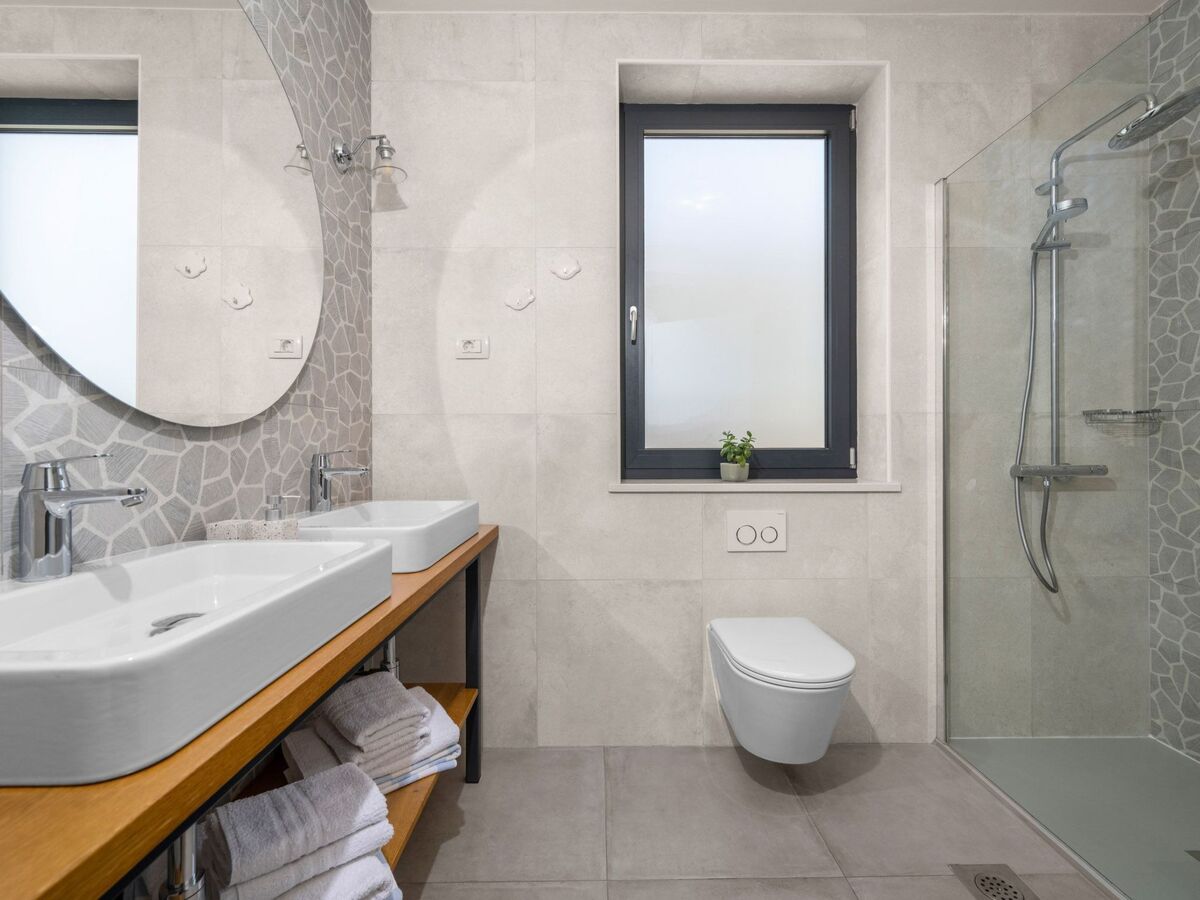 À l'étage, deux autres chambres, chacune avec sa propre salle de bain et sa terrasse donnant sur la baie de Kvarner, sont disponibles.