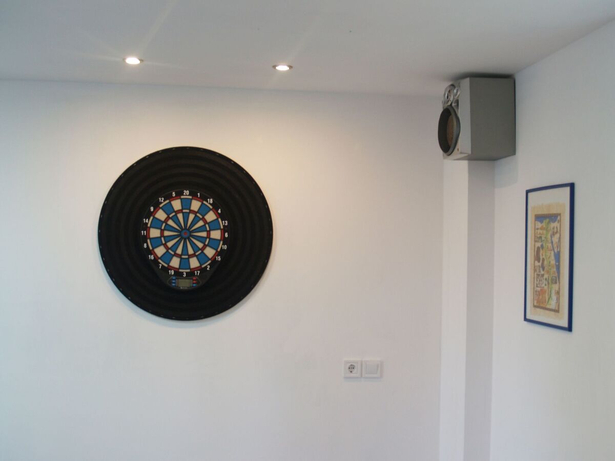 - Space for party guests on the ground floor with a separate entrance has an additional kitchen, extra bed, music, and equipment for a variety of activities: table tennis, darts, badminton, sledges, chairs and a table on the outdoor terrace, deck chairs