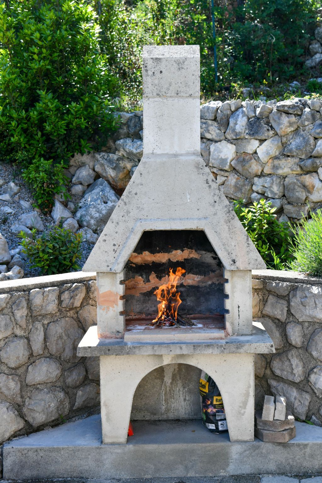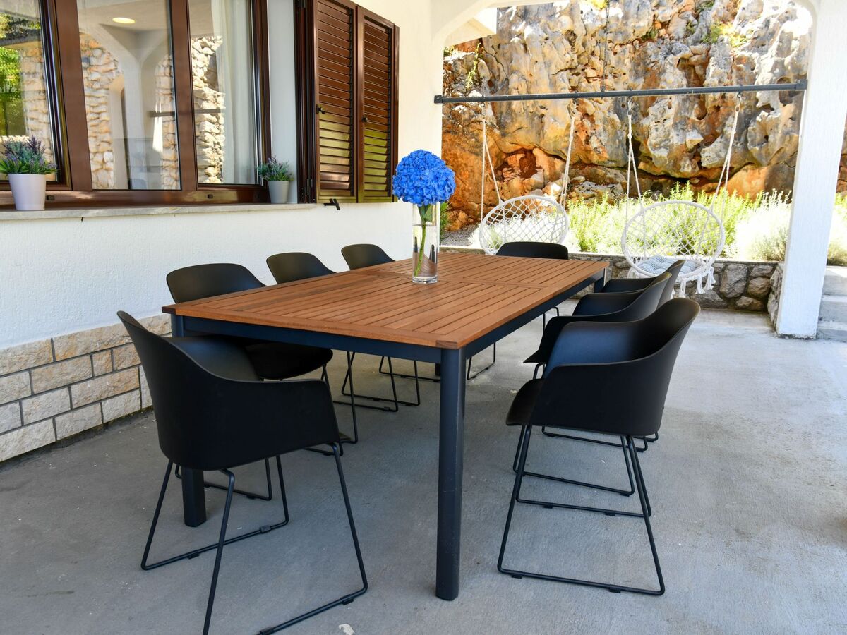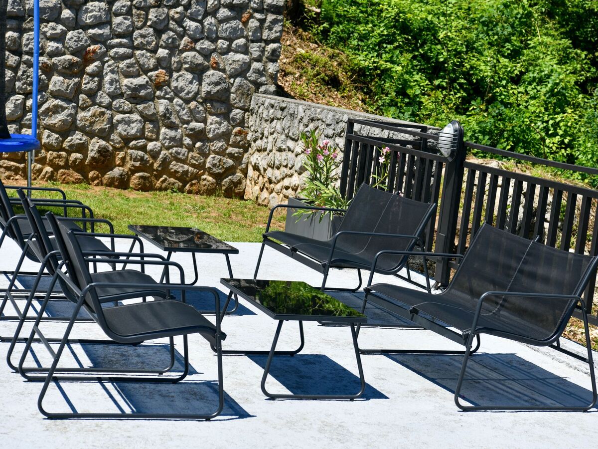 Outdoor area is furnished and intended to enjoy the meals on the grill.