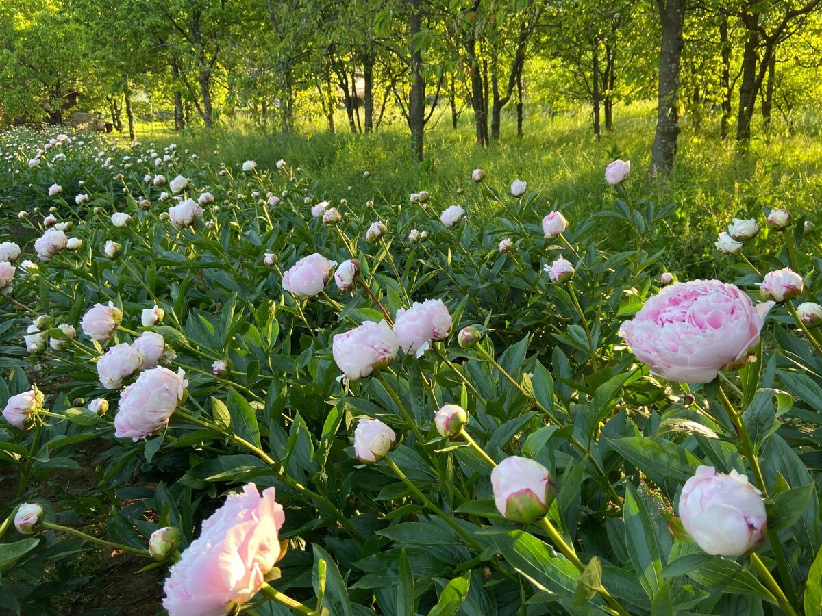 The villa is located on a large plot with cherry trees and peony plantations, so it is especially attractive to see in the spring when it is in bloom.