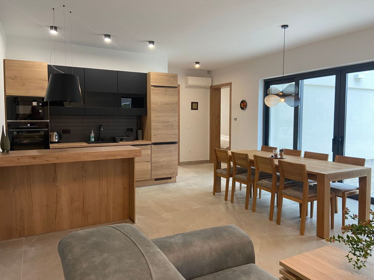 The villa consists two floors with two individual apartments connected by common terraces, a summer kitchen with a barbecue and a swimming pool with a sunbathing area.
