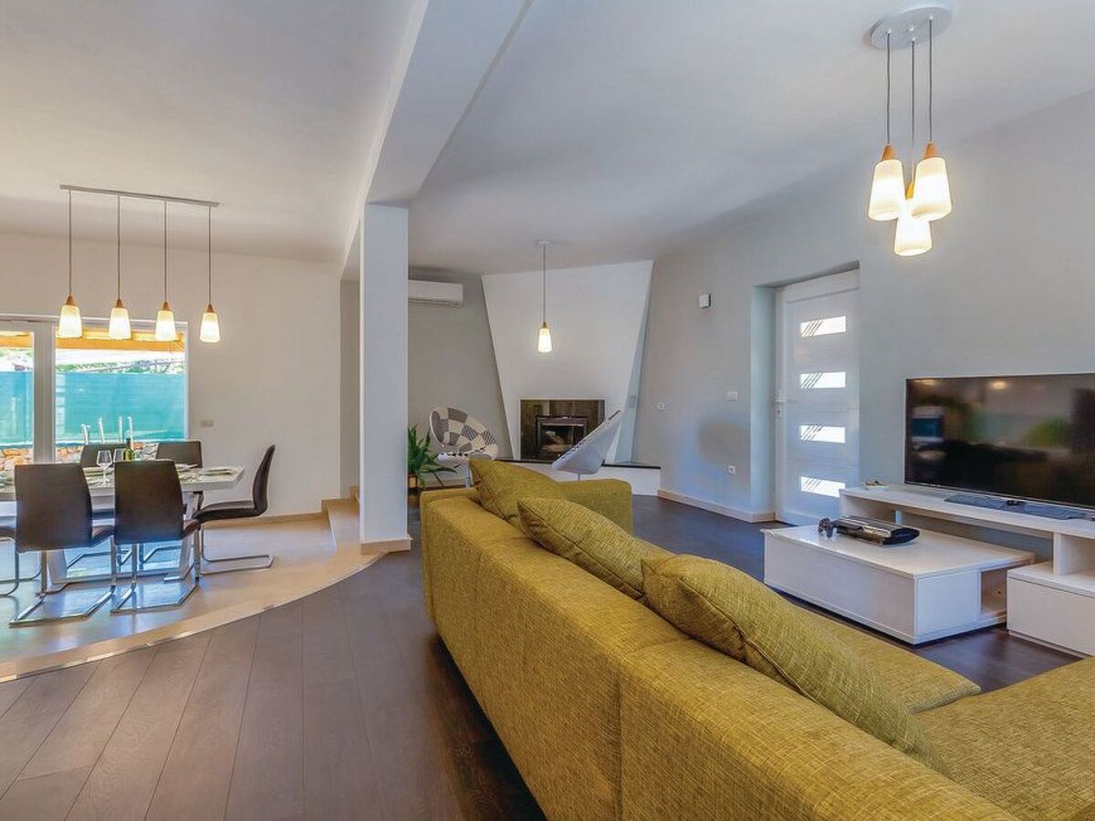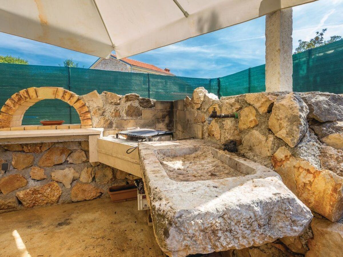 On outside area is sheltered terrace with big wooden table from this tarrace you can jump into your own swimming pool, on the other side of teracce is situated grill/barbecue, also terrace is connested with kitchen.
